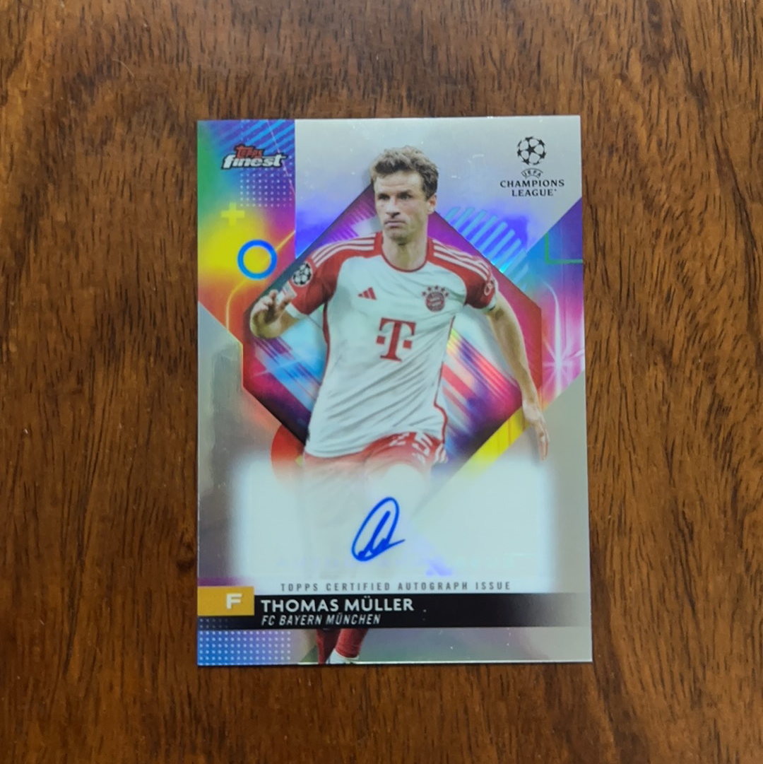 2023-24 Topps Finest Thomas Müller 托马斯 穆勒 签字 贴签 银折 欧冠 拜仁 拜仁慕尼黑 卡品如图