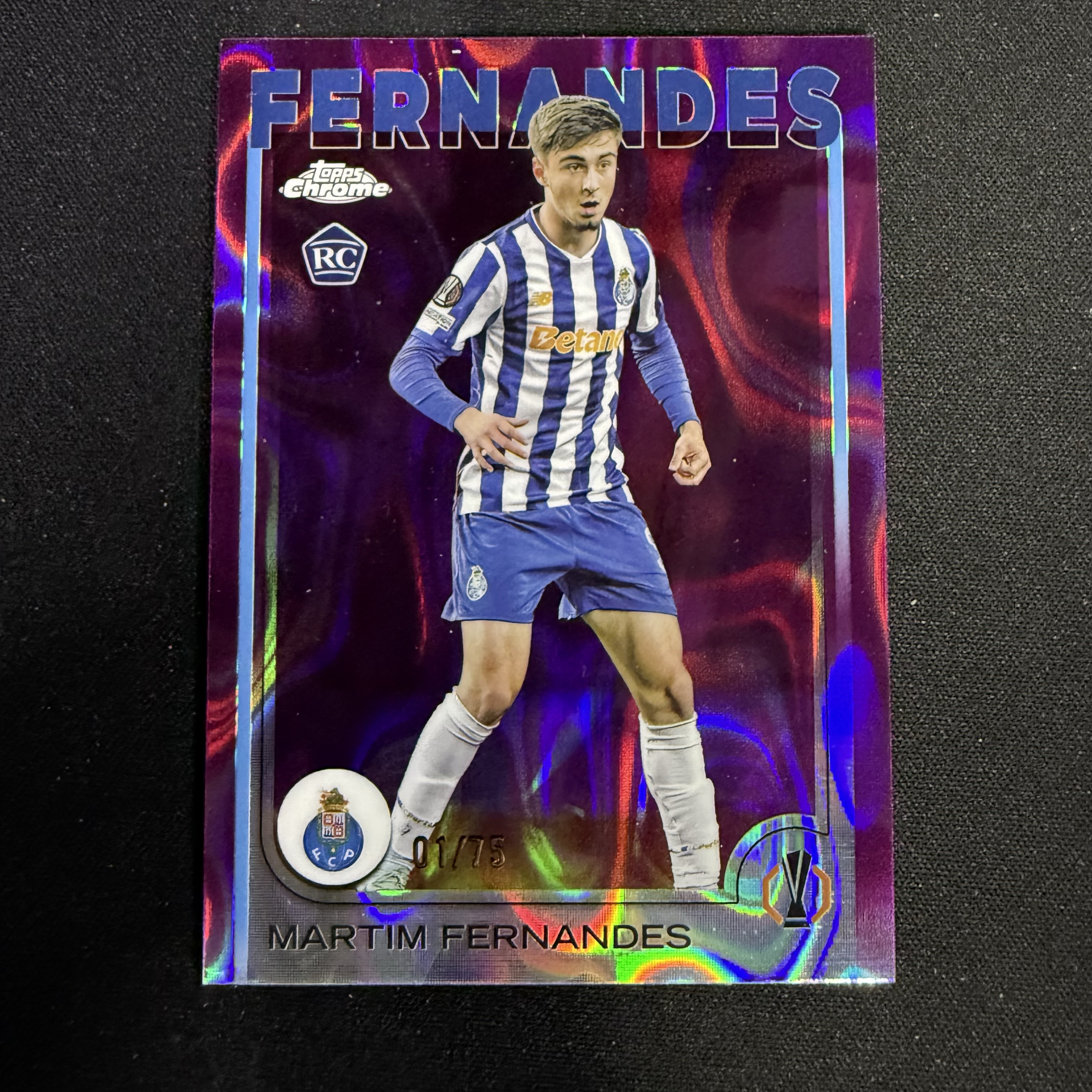 2024-25 Topps Chrome MARTIM FERNANDES RC 【SC拍卖】tc 费尔南德斯 波尔图 新秀 1/75编 品红熔岩 收藏必备(辣酱)