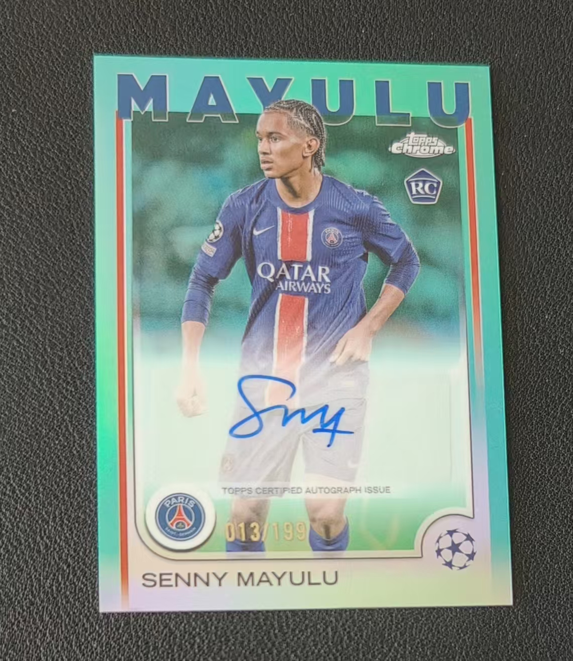 2024-25 Topps Chrome Senny Mayulu (钰钰代拍)欧冠TC 巴黎圣日耳曼 新秀RC 马尤卢 13/199编 青折 签字 卡品如图 拍前看描述 ABB111