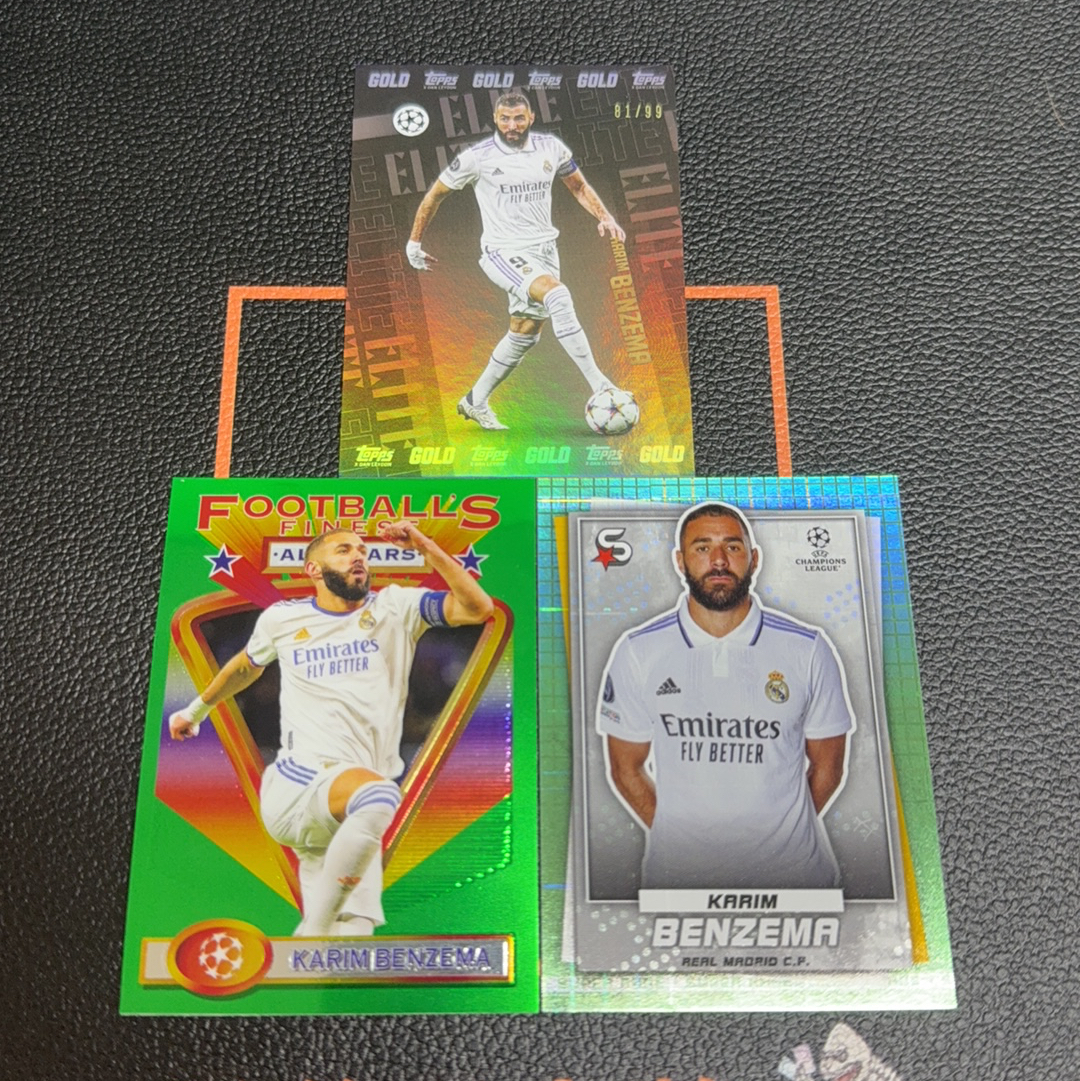 (怪兽拍卖) GSW-C82 2023 Topps Chrome Karim Benzema 本泽马 特卡 皇马 霸王龙 欧冠 99编 绿折 三张打包