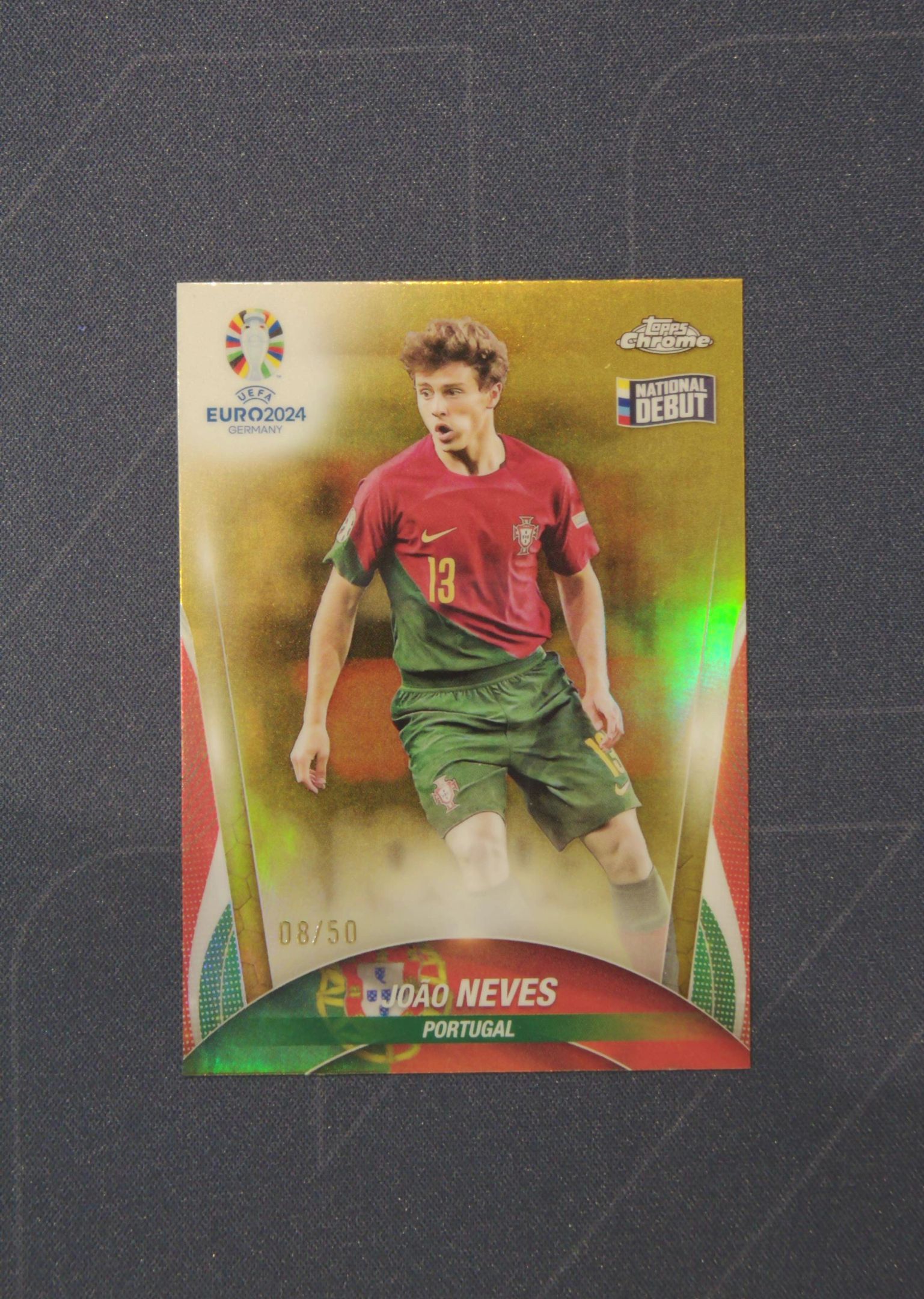 【CU代卖】2024 Topps Chrome UEFA Euro Joao Neves 欧洲杯Tc 葡萄牙 若昂 内维斯 巴黎圣日耳曼 金折 国家队首秀 8/50编 折射 低编 卡品如图 ksl1