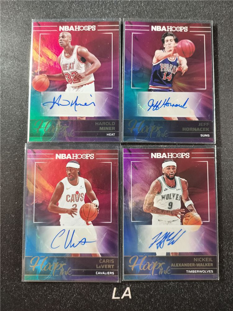 【LA拍卖】2024-25 Panini Hoops 卡里斯 勒维尔 热火 哈罗德 迈纳 杰夫 霍纳塞克 太阳 尼基尔 亚历山大 沃克 森林狼 折射 Hoops Ink 签字 四张打包 B53B