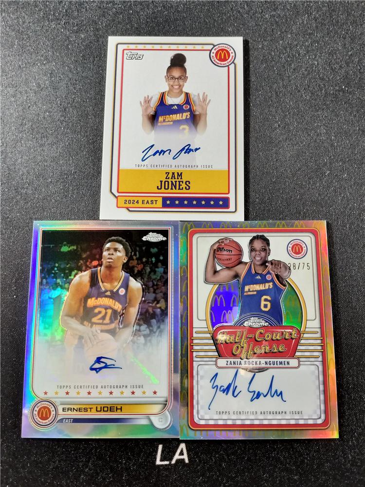 【LA拍卖】2022 2024 Topps Chrome McDonald's All American 麦当劳全明星 扎姆 琼斯 小欧内斯特 乌德 扎尼娅 索卡 努梅恩 银折 麦当劳折 卡签签字+签字 /75编 三张打包 B53B
