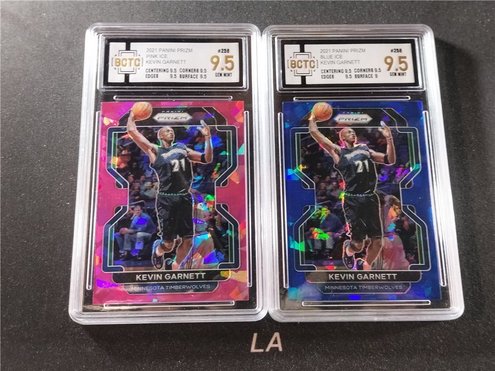 【LA拍卖】2021-22 Panini Prizm Kevin Garnett 凯文 加内特 森林狼凯尔特人队名宿 狼王 KG 75大巨星 粉碎冰折 蓝碎冰折 base 1/125首编 BCTC9.5分 两张打包 B53B