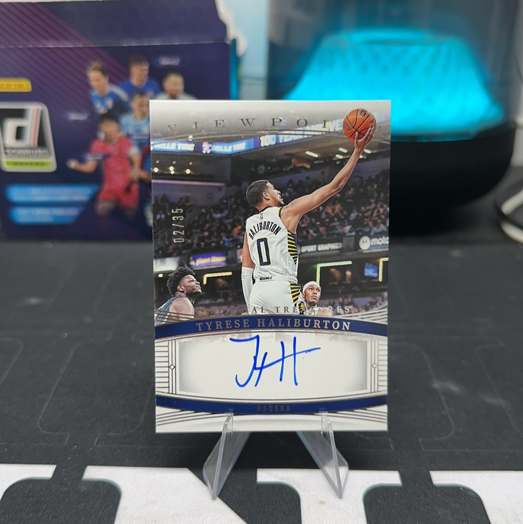 2023-24 Panini National Treasures Tyrese Haliburton 【大熊拍卖】国王 哈利伯顿 哈里伯顿 国宝签字卡签 02/35编 墨迹好 微瑕如图 心哥