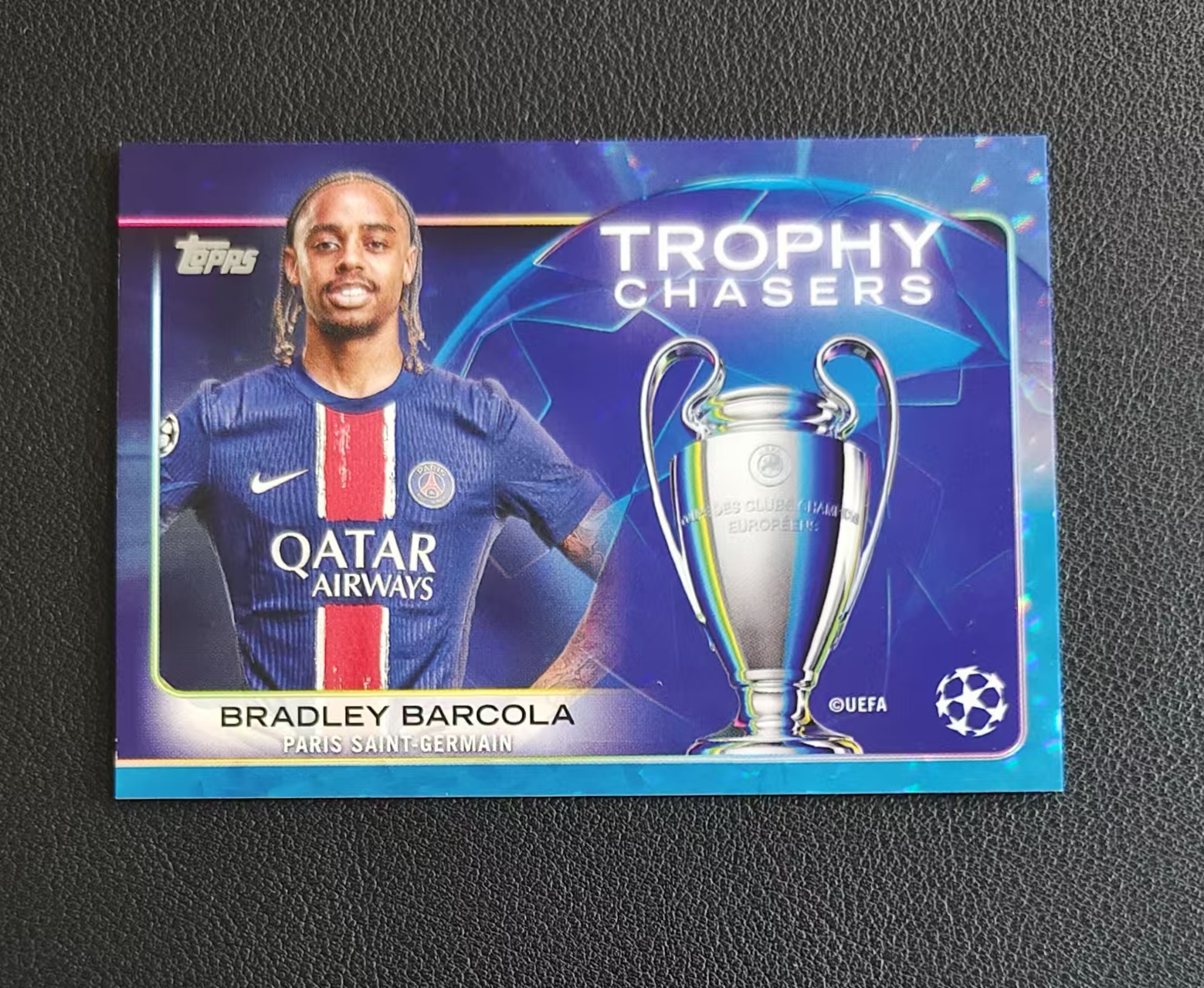 2024-25 Topps UCC Bradley Barcola (钰钰代拍)欧冠 UCC 巴黎圣日耳曼 巴尔科拉 07/75编 奖杯追梦人特卡 蓝折 卡品如图 拍前看描述 OIU111