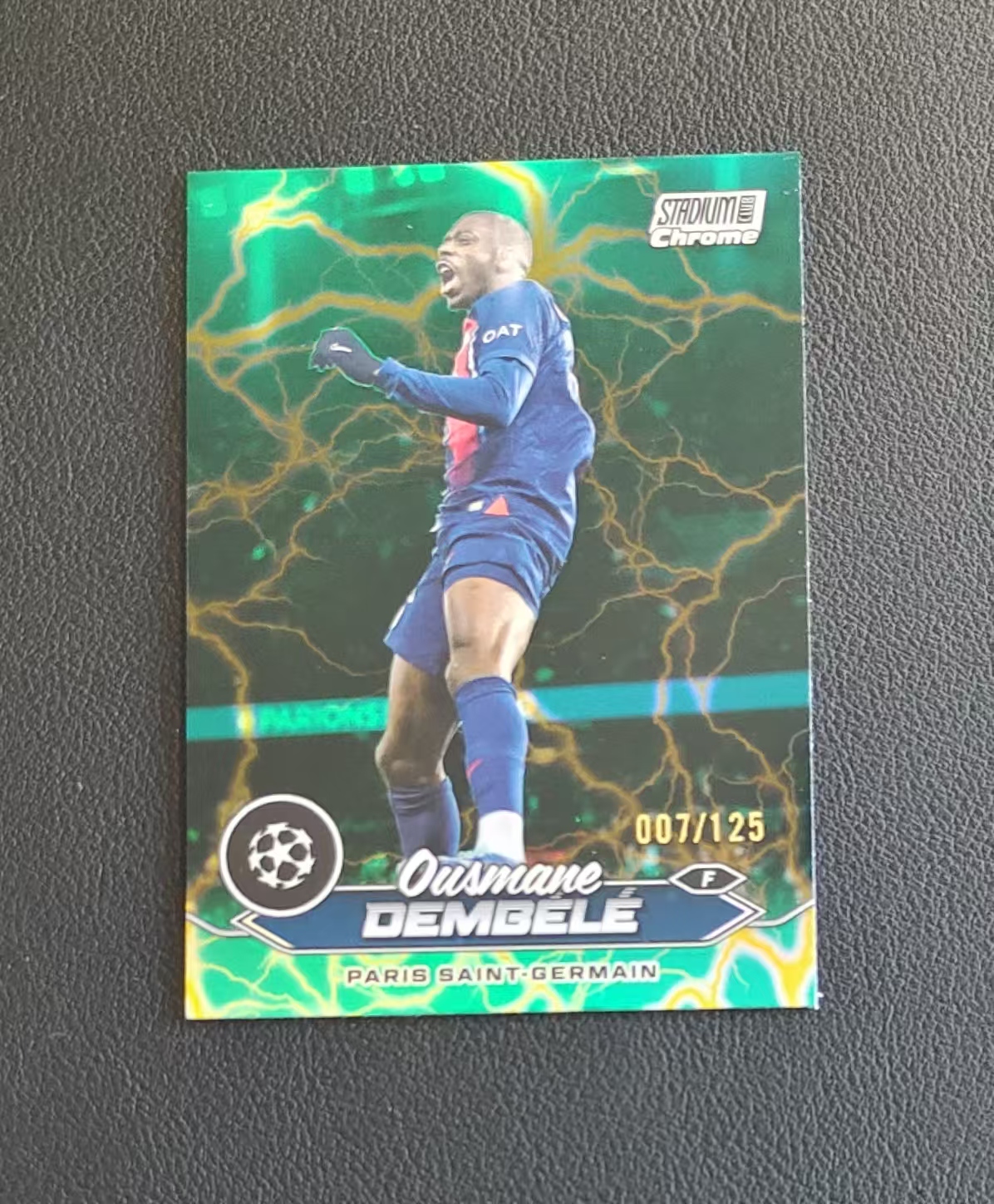 2023-24 Topps Stadium Club Ousmane Dembélé (钰钰代拍)欧冠 竞技场 巴黎圣日耳曼 登贝莱 7/125编 黄绿闪电折 卡品如图 拍前看描述 NAA111