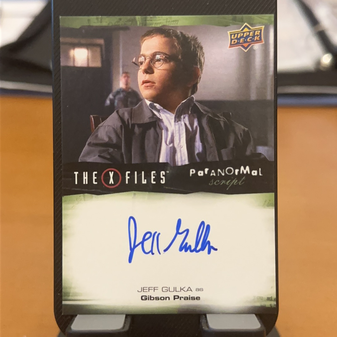 X档案 Upper Deck 签字卡 Jeff Gulka 饰演 Gibson Praise,卡片品相完好,签名清晰工整。这张是2018年UD发行的经典美剧X档案演员亲笔签字卡,所见即所得