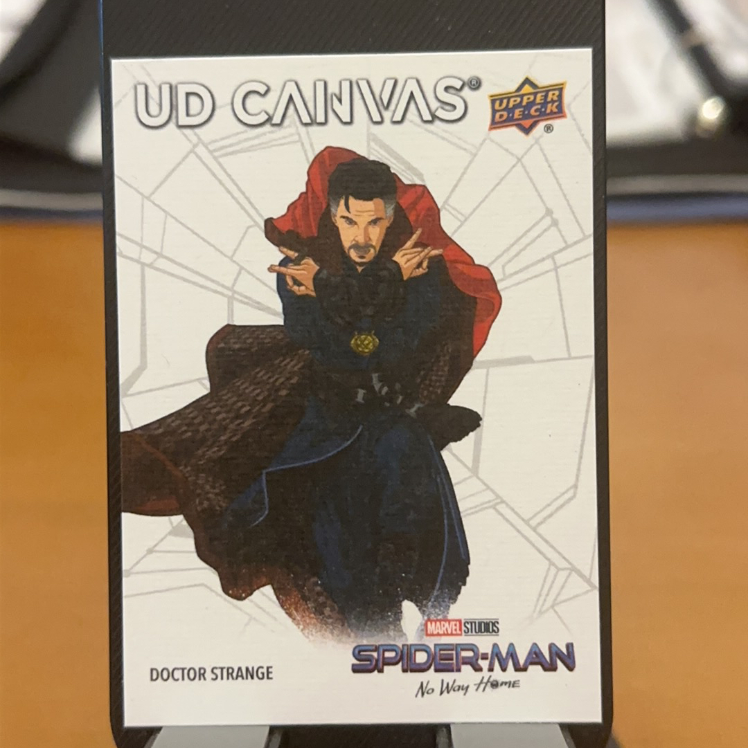 2023 UD漫威蜘蛛侠英雄无归 画布特卡 多佛斯特兰奇博士。这张是电影里的经典场景,蜘蛛侠阻止多佛斯特的仪式。卡片品相完美