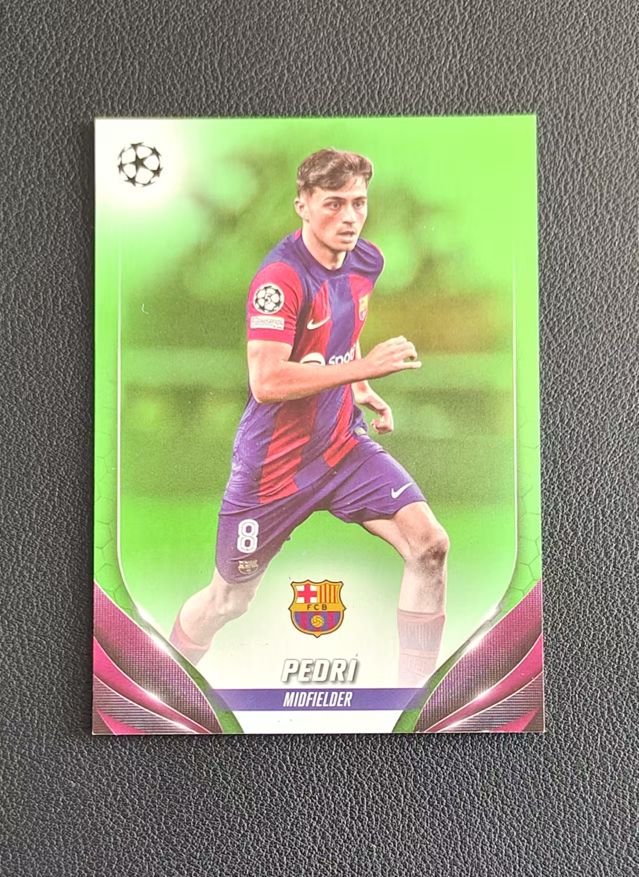 2023-24 Topps UCC Pedri (钰钰代拍)欧冠 UCC 巴塞罗那 佩德里 98/199编 绿折 瑕疵如图 拍前看描述 OIU111
