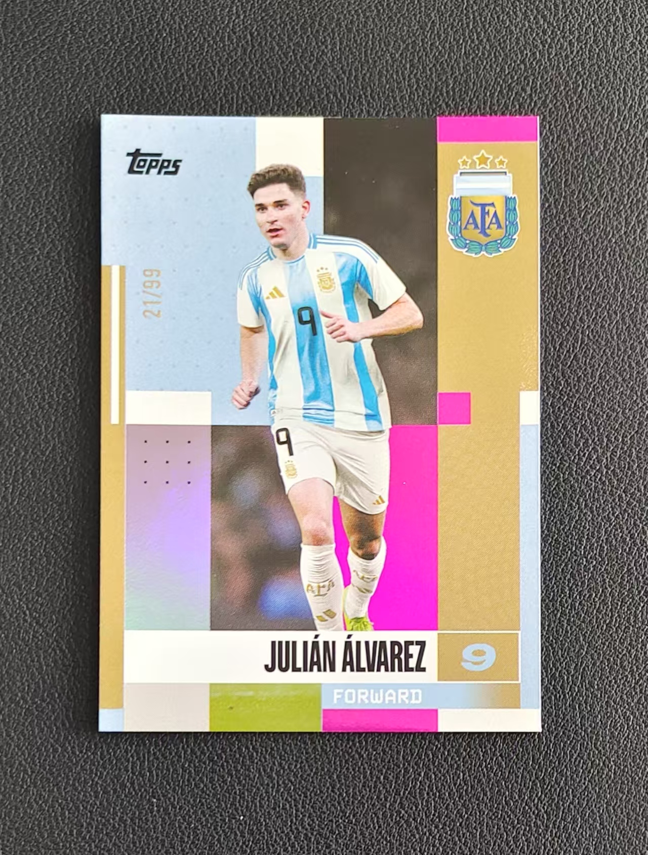 2024-25 Topps 阿根廷队盒 Julián Álvarez (钰钰代拍)阿根廷 阿尔瓦雷斯 21/99编 粉折 卡品如图 拍前看描述 OIU111