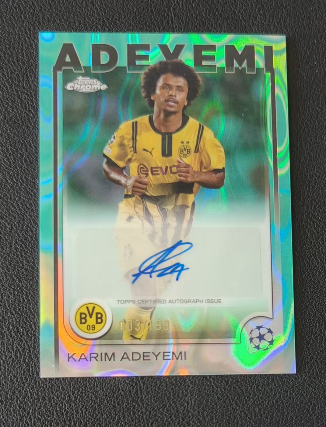 2024-25 Topps Chrome Karim Adeyemi (钰钰代拍)欧冠TC 多特蒙德 阿德耶米 3/199编 青熔岩折 签字 瑕疵如图 拍前看描述 NAA111