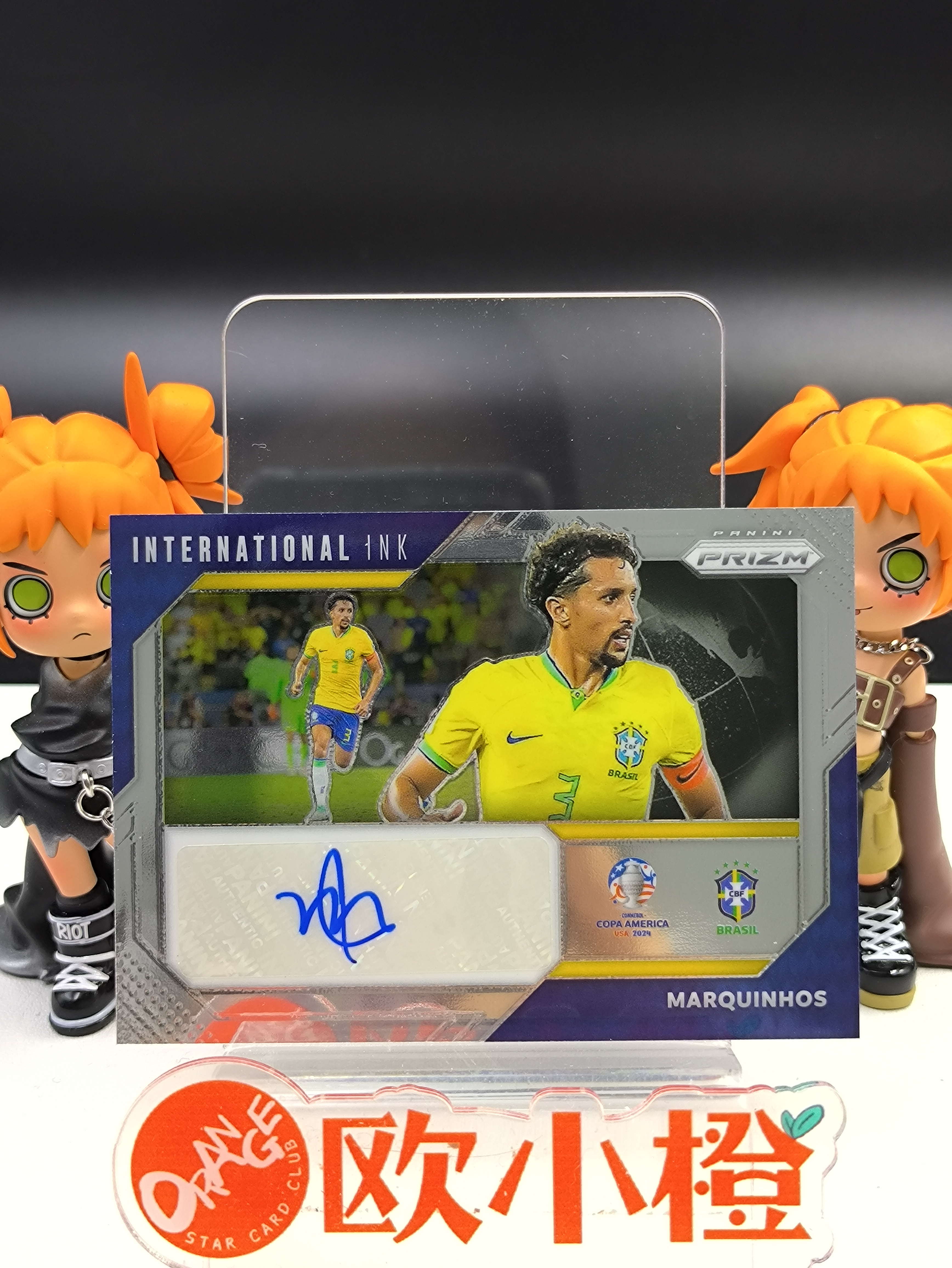 2024 【欧小橙急速拍】 Prizm Marquinhos 美洲杯PZ 巴西 马基尼奥斯 签字 国际ink签 base 细节如图 收藏必备 剑-LR