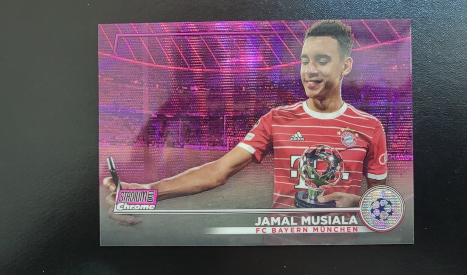 【魔都宝鉴 亨利10】2023 Topps Stadium Club Chrome 竞技场 欧冠 粉波纹折 150编 Jamal Musiala 穆夏拉 拜仁 mem 卡品如图