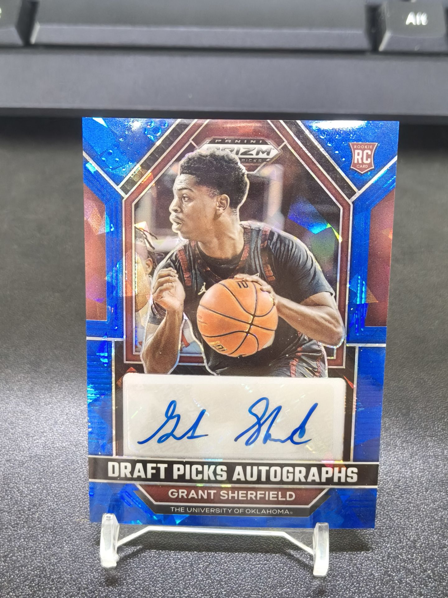 【浩行拍卖 截标预付82%】2023 panini prizm draft grant sherfield 大学 格兰特 舍费尔德 RC 新秀 蓝碎冰折 折射 签字 41/75编 瑕疵看图 专收必备「落枫」0618B06劉