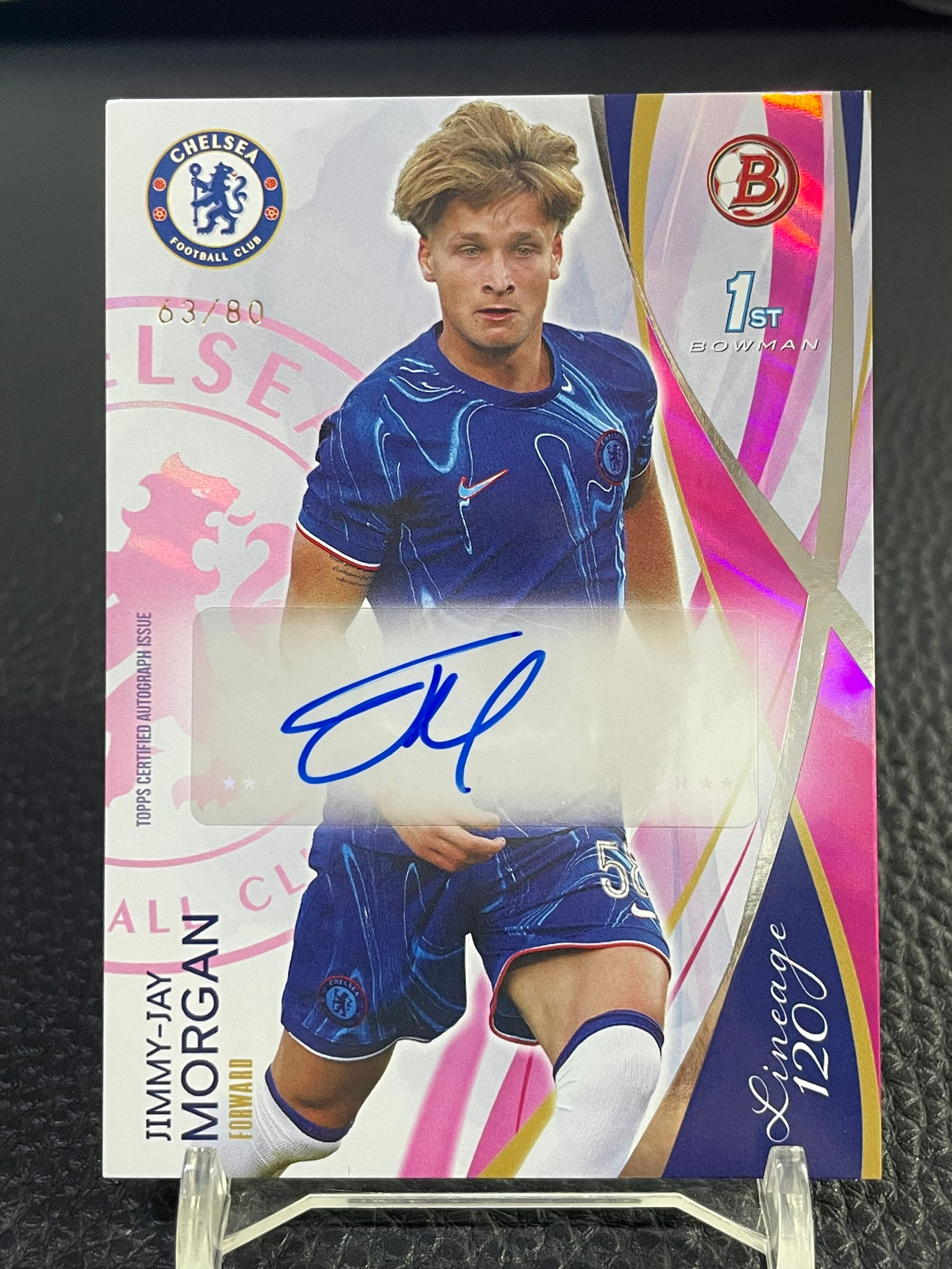 【浩行拍卖 截标预付82%】2025 topps lineage jimmy jay morgan 切尔西血统队盒 英格兰 吉米杰伊摩根 1st rc新秀 签字 120周年纪念 粉探戈折 折射 63/80编 瑕疵看图「邮编」0618C05驡