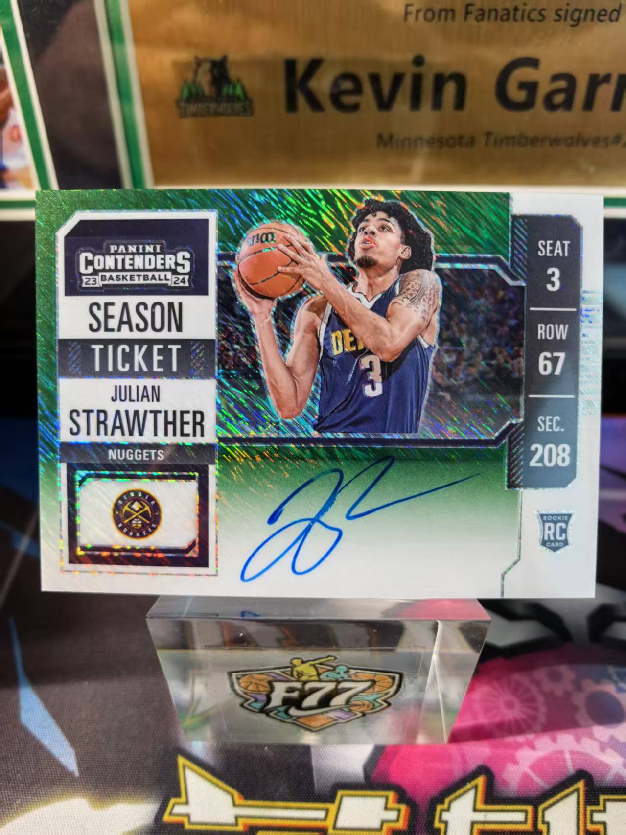 2023-24 Panini Contenders Julian Strawther 朱利安 斯特劳瑟 掘金 新秀 球票 折射 绿shimmer折 签字 卡签 收藏必备 叶叶