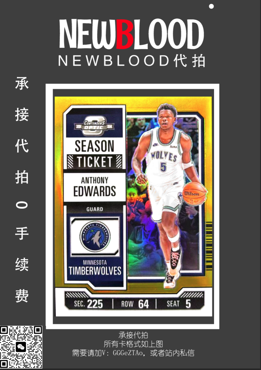 2023-24 Panini Contenders Optic Anthony Edwards 安东尼爱德华兹 10编 球票OP 正金折 金折 华子 森林狼 金平行 狼王 低编 联盟门面