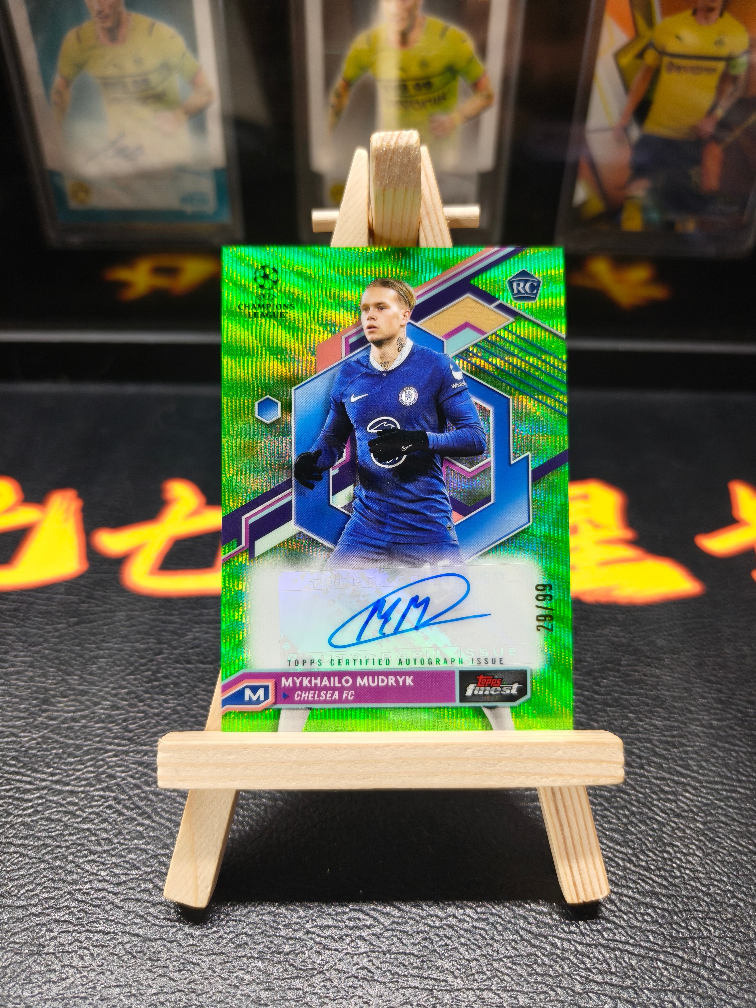 2024 Topps Finest Mykhailo Mudryk RC 欧冠 穆德里克 完美签字 限量28/99编 绿波纹折 经典选图 切尔西 专收必备 卡品如图 七七代卖