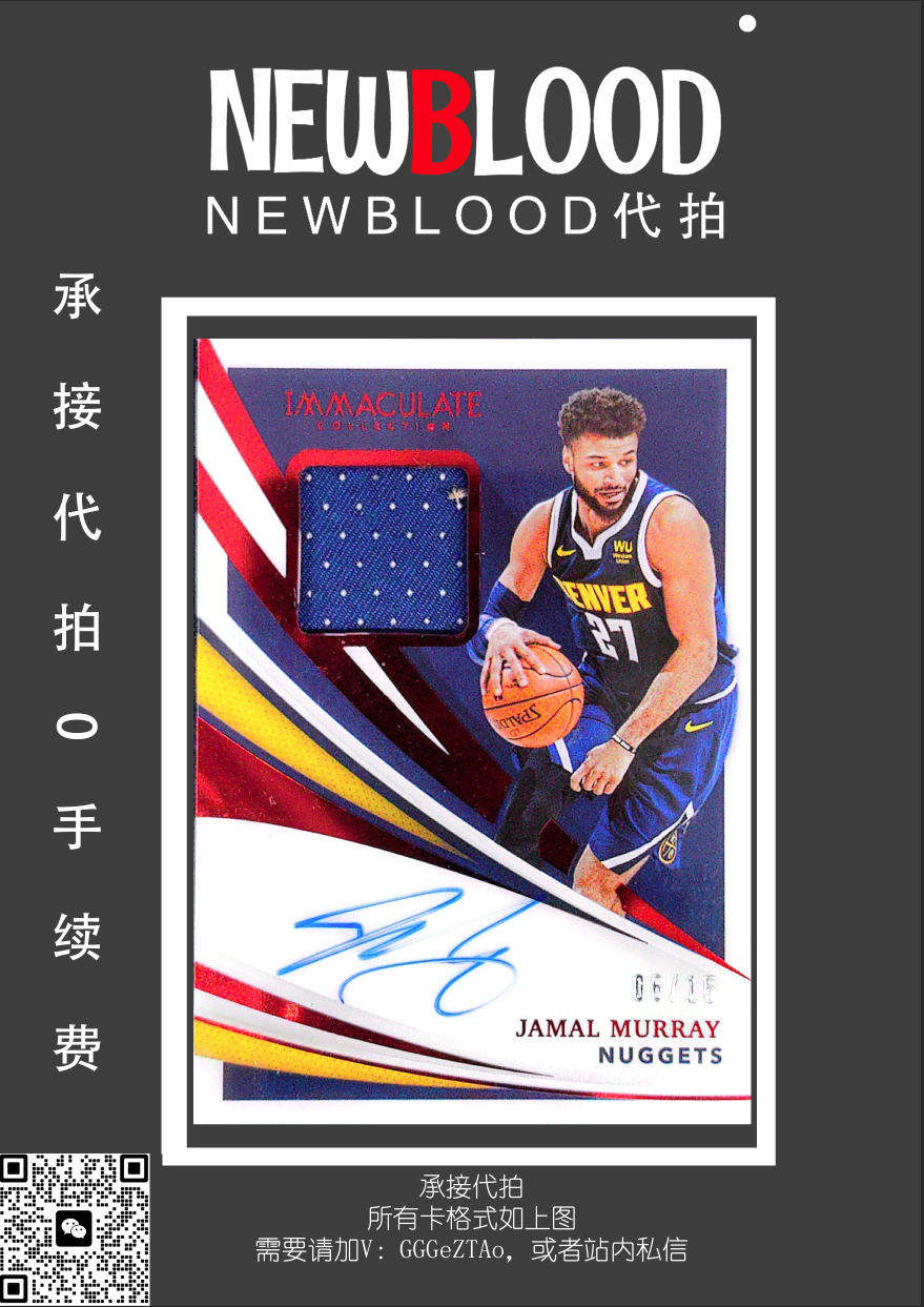 2020-21 Panini Immaculate Jamal Murray 贾马尔穆雷 15编/ 爱咪咪 卡签 签字 球衣切割 物料 纯色PATCH JA IMM 掘金 贾马尔默里