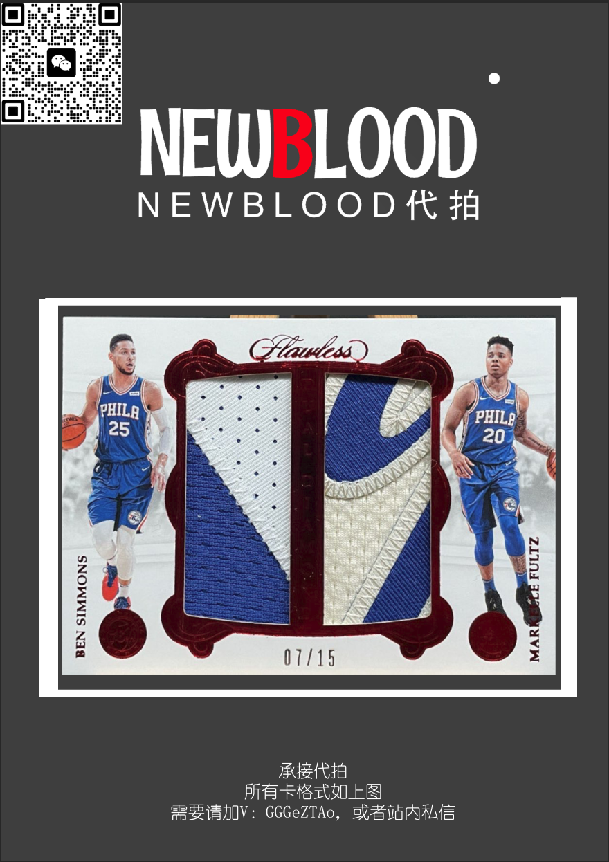 2017-18 Panini Flawless Markelle Fultz RC 本西蒙斯 马克富尔茨 新秀 15编/ 手提 物料 PATCH 超级暴力切割 双人 双窗 红平行 好卡 76人