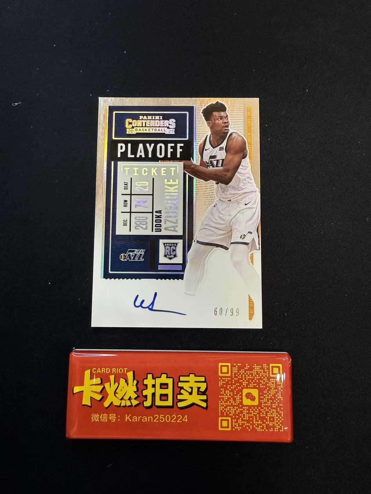 2020-21 [卡燃拍卖预付85%】 Contenders Udoka Azubuike RC 球票 爵士 乌多卡 阿祖布伊克 RC新秀 /99编 签字 折射 值得收藏 不保卡品【小炮630】