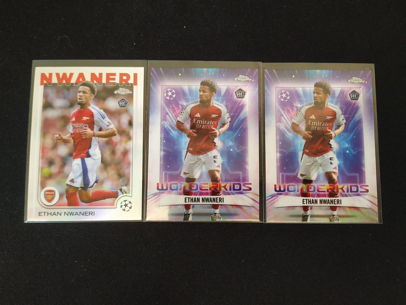 7-7【钢蛋儿拍卖】waby 126 topps 2024-25 欧冠 欧战 Chrome UCC 阿森纳 3张 RC 新秀 Wonderkid 神奇小妖 base 银折 伊森 恩瓦内里 Ethan Nwaneri