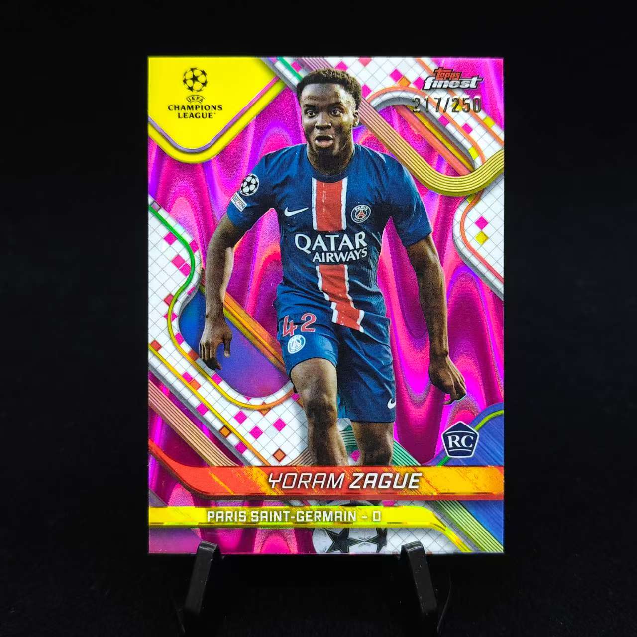 【德基拍卖】2024-25 Topps Finest Yoram Zague RC 欧战Finest 巴黎圣日尔曼 扎古埃 粉变形虫折 /250编 收藏必备 卡品如图 Lang7-7