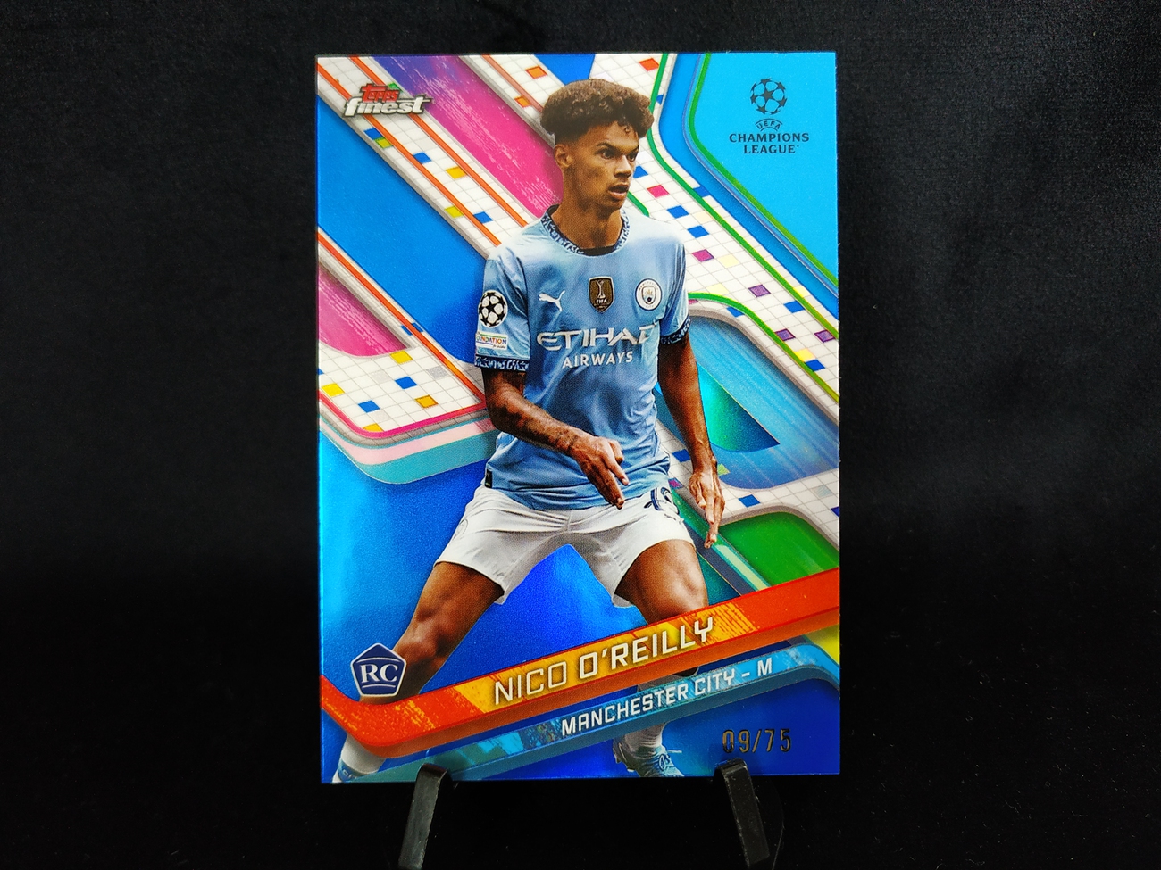 7-8【钢蛋儿拍卖】liyan 685 topps 2024-25 欧冠 finest UCC 曼城 RC 新秀 蓝折 75编 尼科 奥赖利 Nico O Reilly 卡品如图