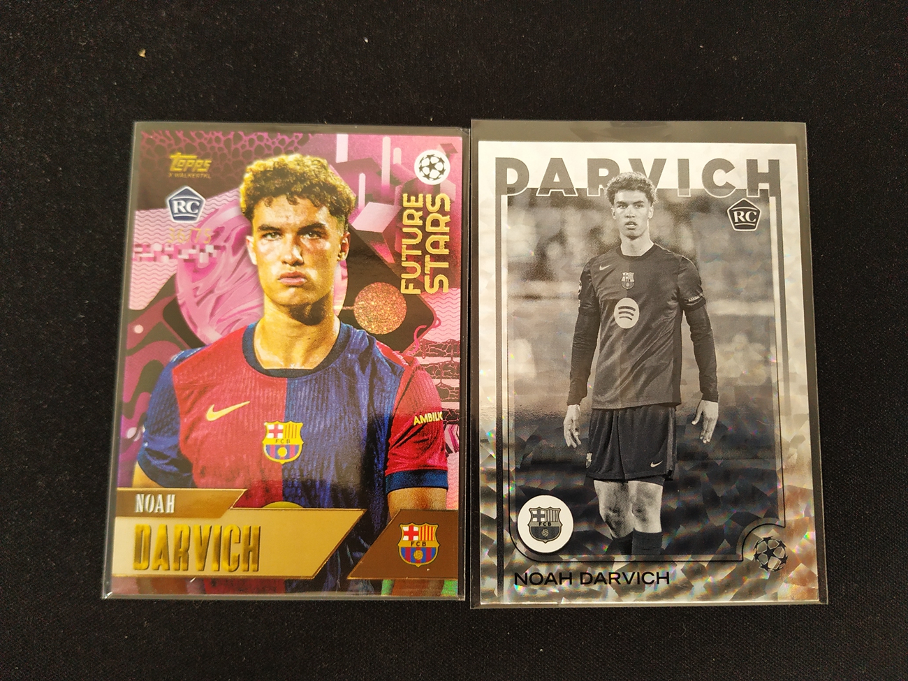 7-8【钢蛋儿拍卖】ahep 574 topps 2024-25 欧冠 gold / UCC 巴萨 2张 RC 新秀 黑白碎冰折 150编 粉折 75编 诺阿 达尔维奇 Noah Darvich 卡品如图