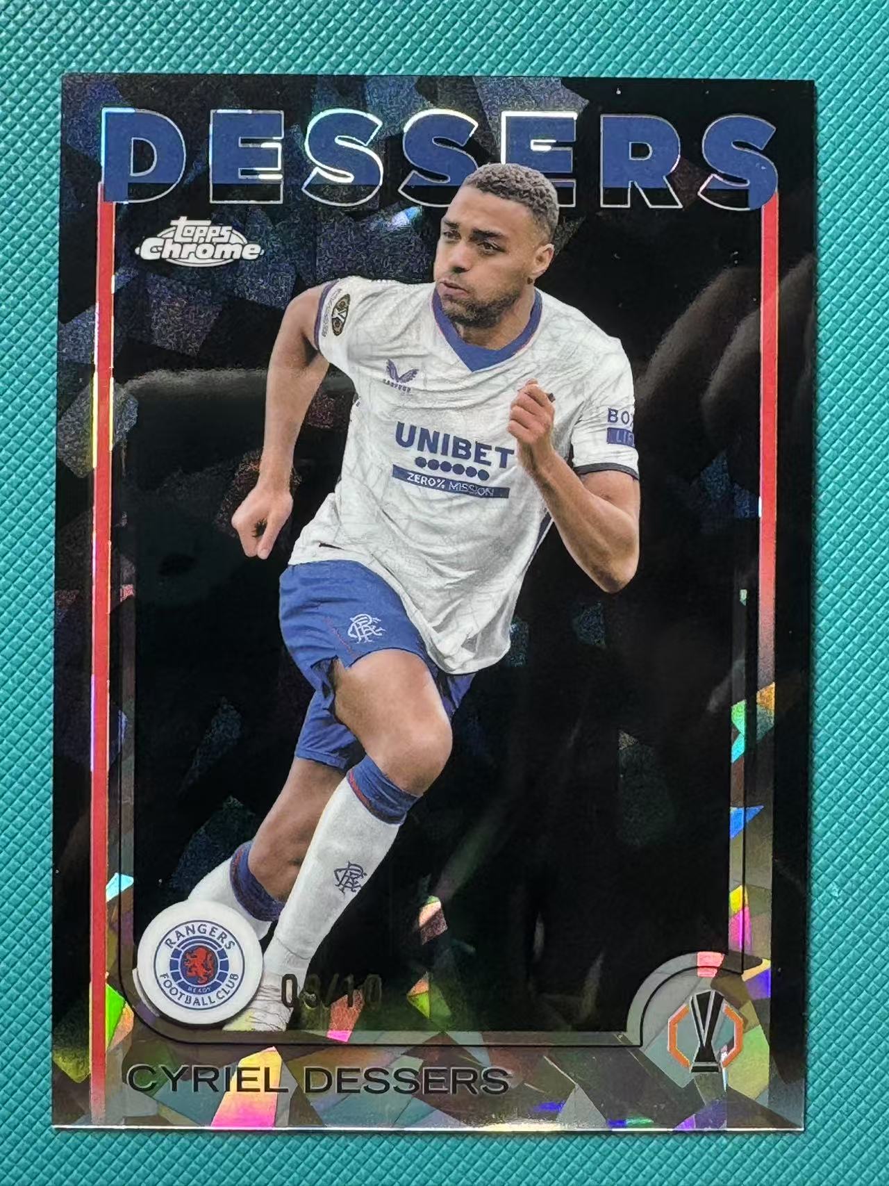 Cyriel Dessers 2025 Topps Chrome 西里尔 德瑟斯 09/10编 低编 格拉斯哥流浪者 欧冠TC 正黑 碎冰折射 卡品如图