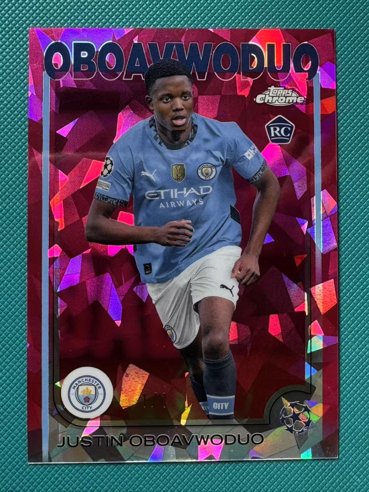 Justin Oboavwoduo 2024-25 Topps Chrome 欧冠 奥博阿沃杜奥 新秀 RC 1/1编 One And One 粉色碎冰折 曼城 折射 收藏必备 卡品如图