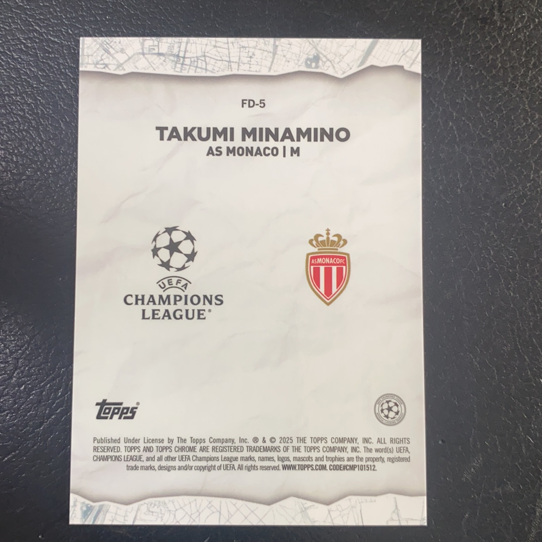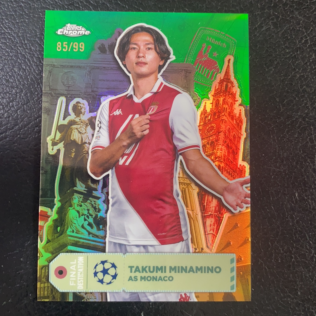 2024-25 Topps Chrome Takumi Minamino tc 南野拓实 摩纳哥 日本前锋 利物浦 FINAL 特卡 大比例 绿折 85/99编 带编 折射 卡品如图