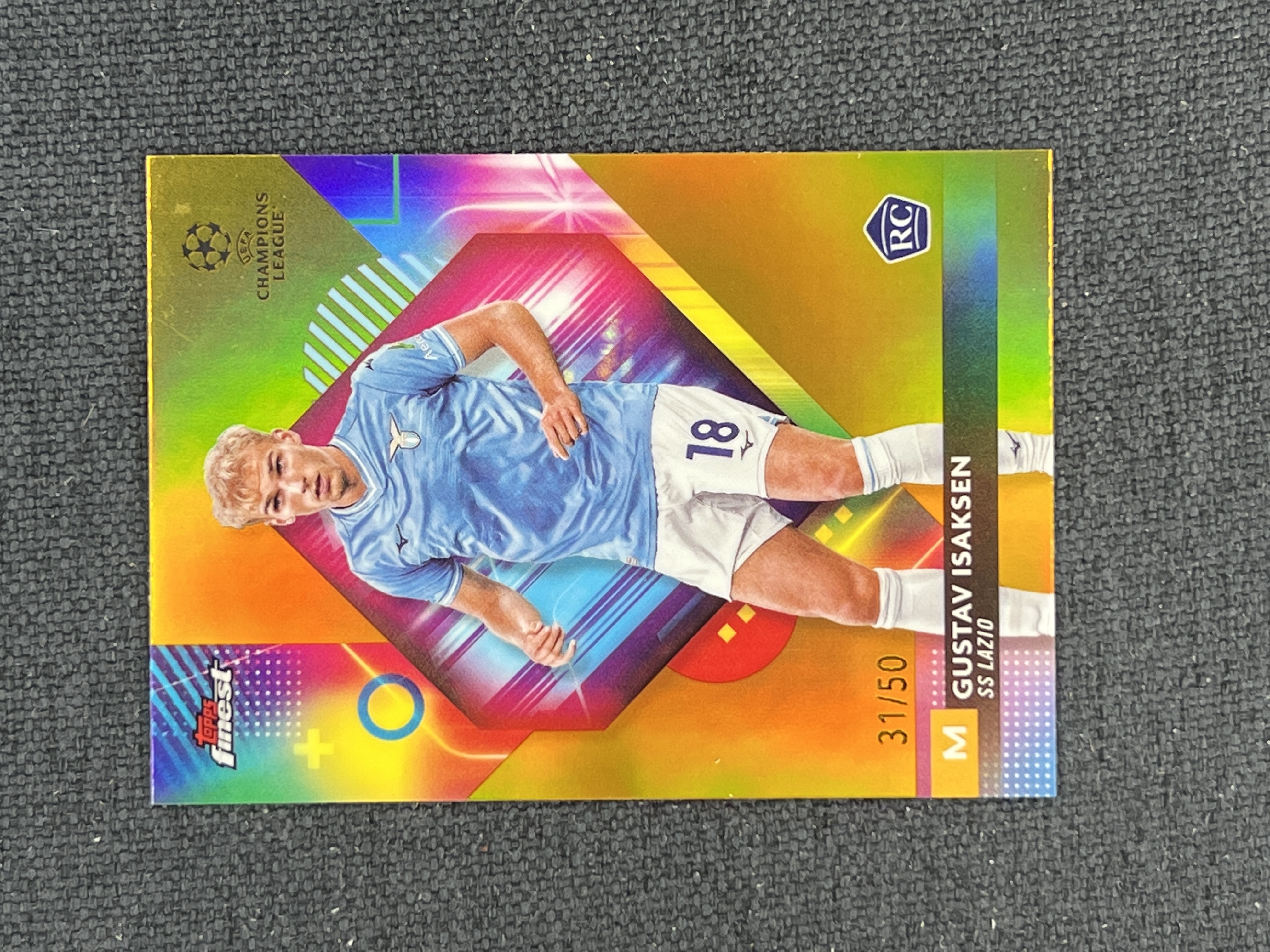 2023-24 Topps Finest Gustav Isaksen RC 【禄卡拍卖】欧冠TC 伊萨克森 新秀 金折 31/50编 拉齐奥 7.3-小D-007