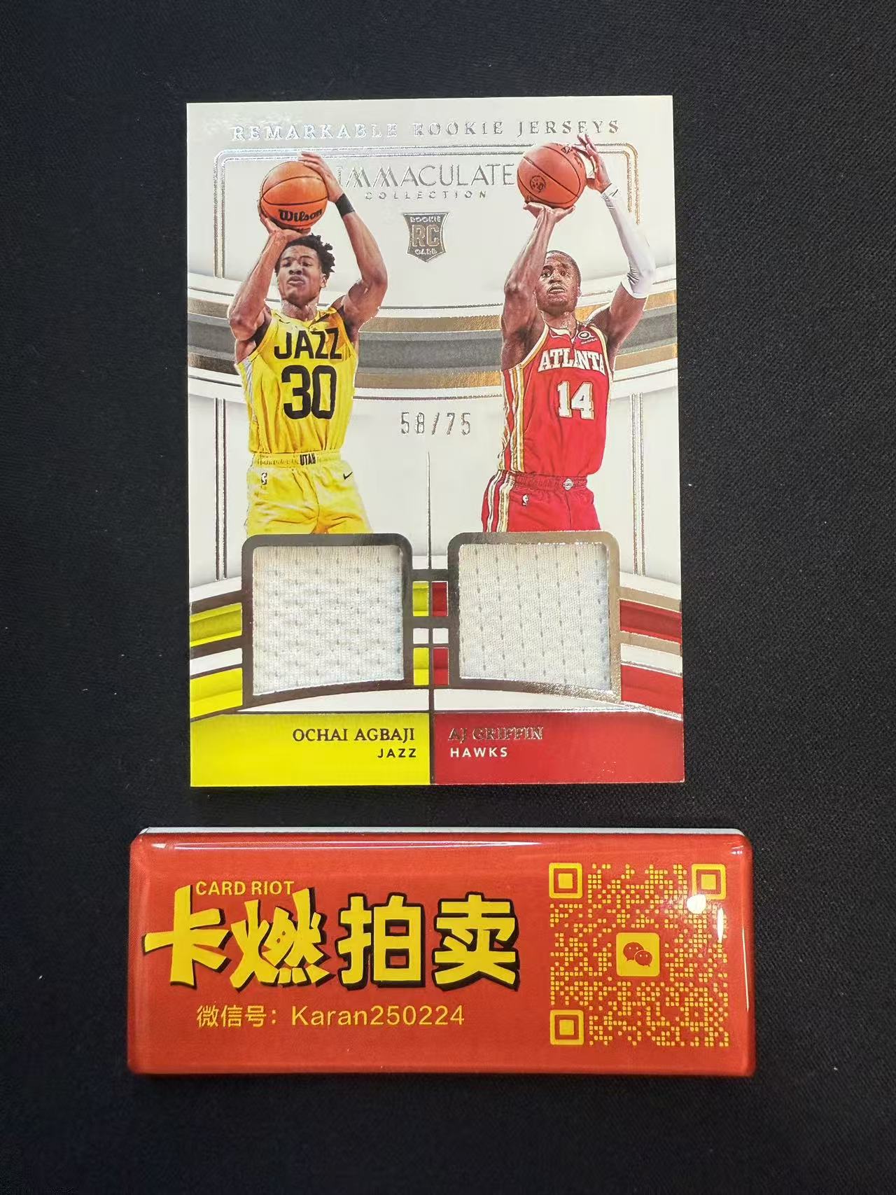 2022-23 【卡燃拍卖预付85%】 Immaculate Ochai Agbaji RC 爱咪咪 爵士 奥柴 阿巴基 老鹰 AJ 格里芬 新秀RC /75编 双窗 物料切割 不保卡品【小炮75】