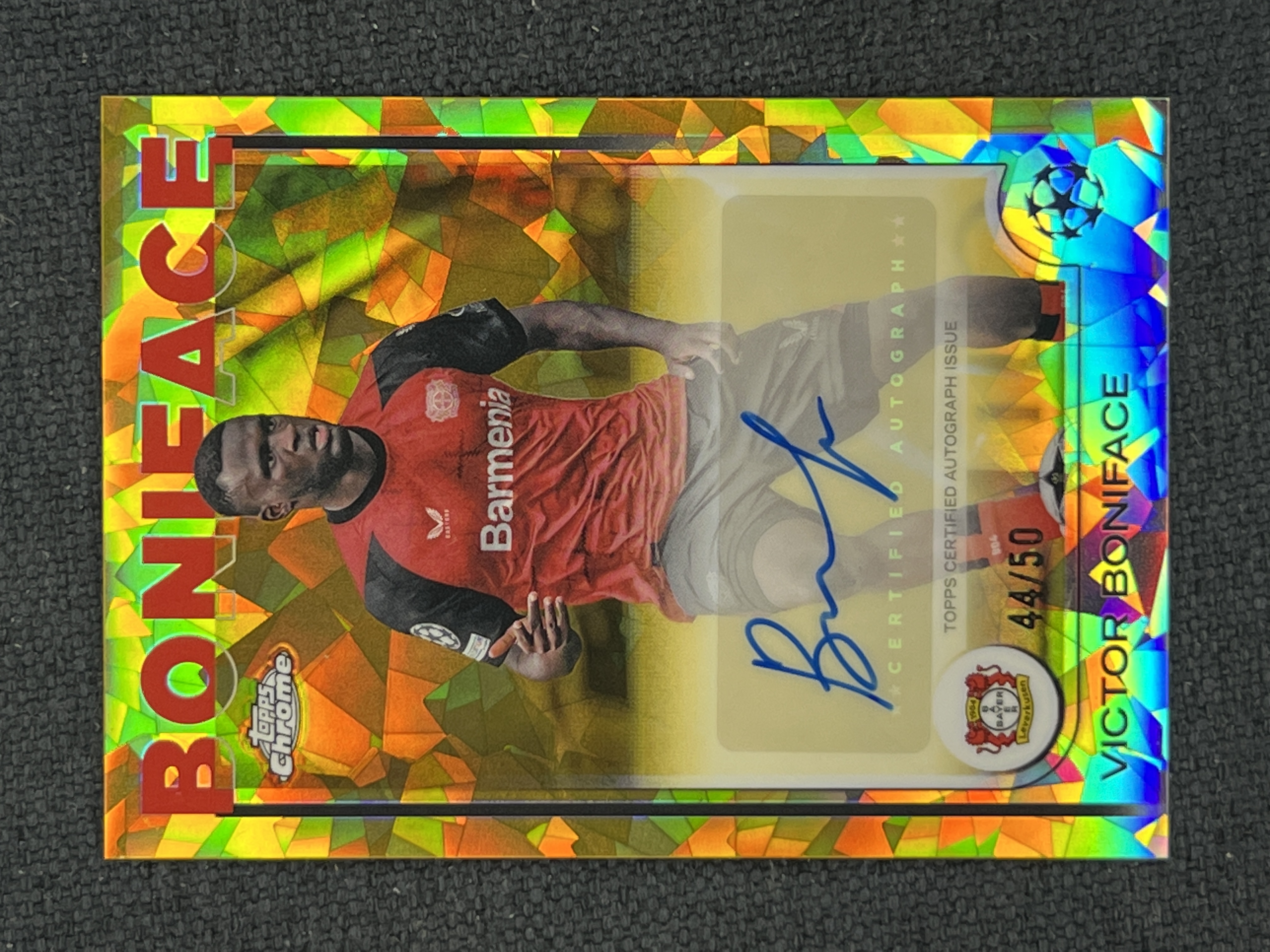 2024-25 Topps Chrome Victor Boniface 【禄卡拍卖】TC欧冠蓝宝石 维克托 博尼法斯 签字 金碎冰折 44/50编 勒沃库森 7.5-LK206-007