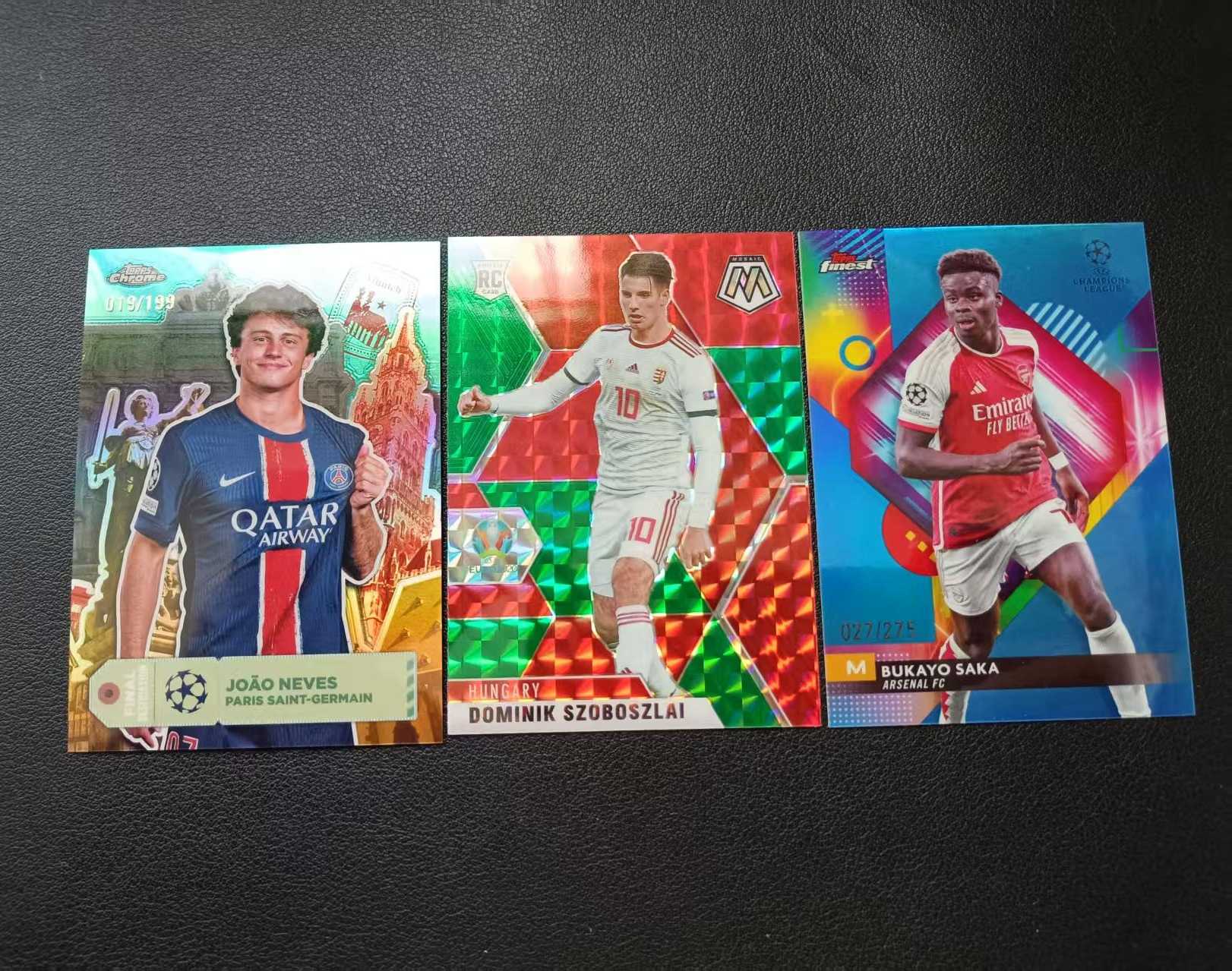 【承诺】2025topps chrome系列 巴黎圣日耳曼 若奥内维斯 199编 折射特卡+2021mosaic马赛克 索博斯洛伊 新秀绿折特卡+topps finest 萨卡 275编 蓝折(江)
