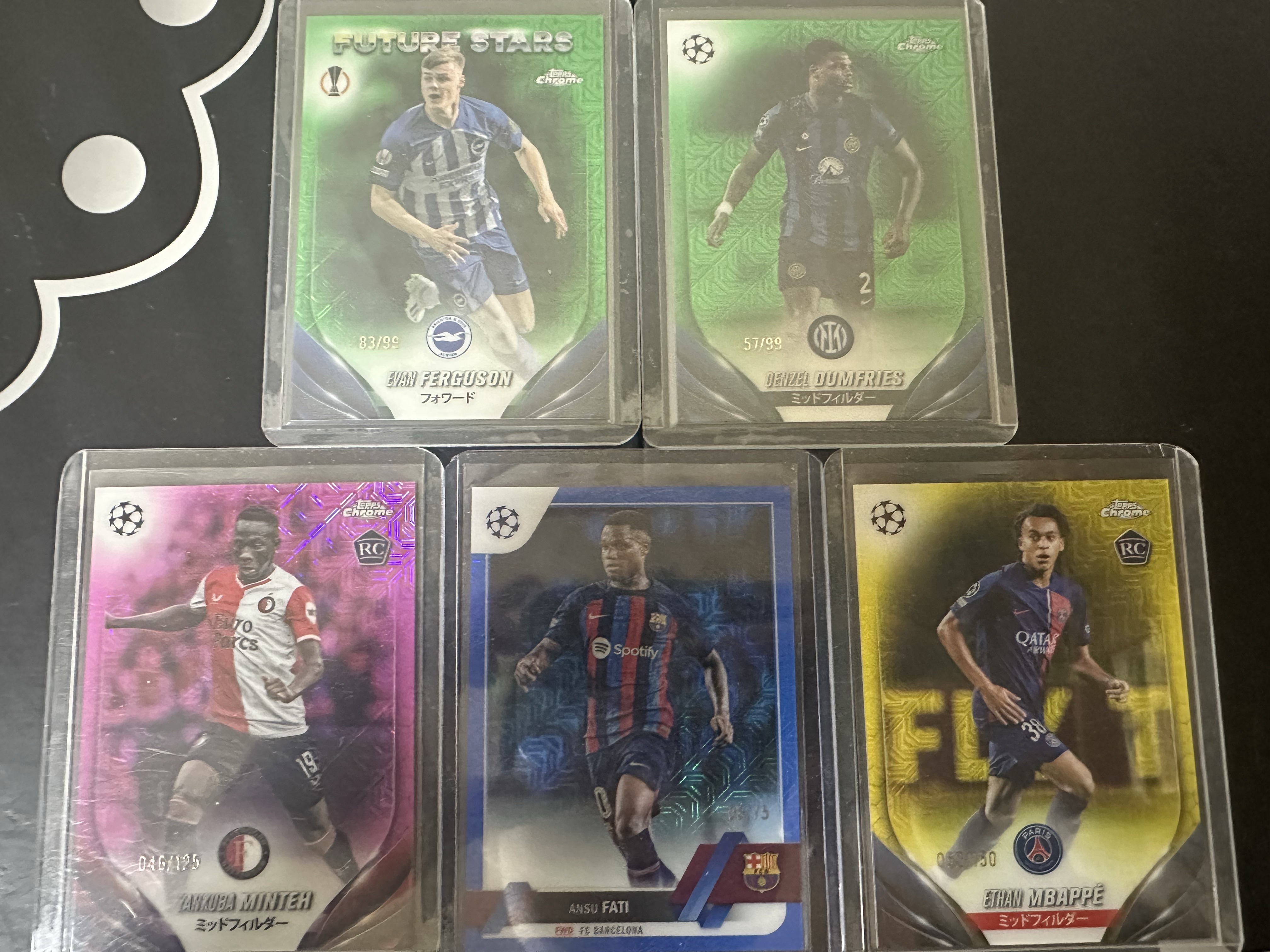 topps 欧冠 chrome 日本樱花版 法蒂 姆巴佩 邓弗里斯 弗格森 扬库巴明泰 99 75 125 150编 黄迷宫折 绿迷宫折 蓝迷宫折