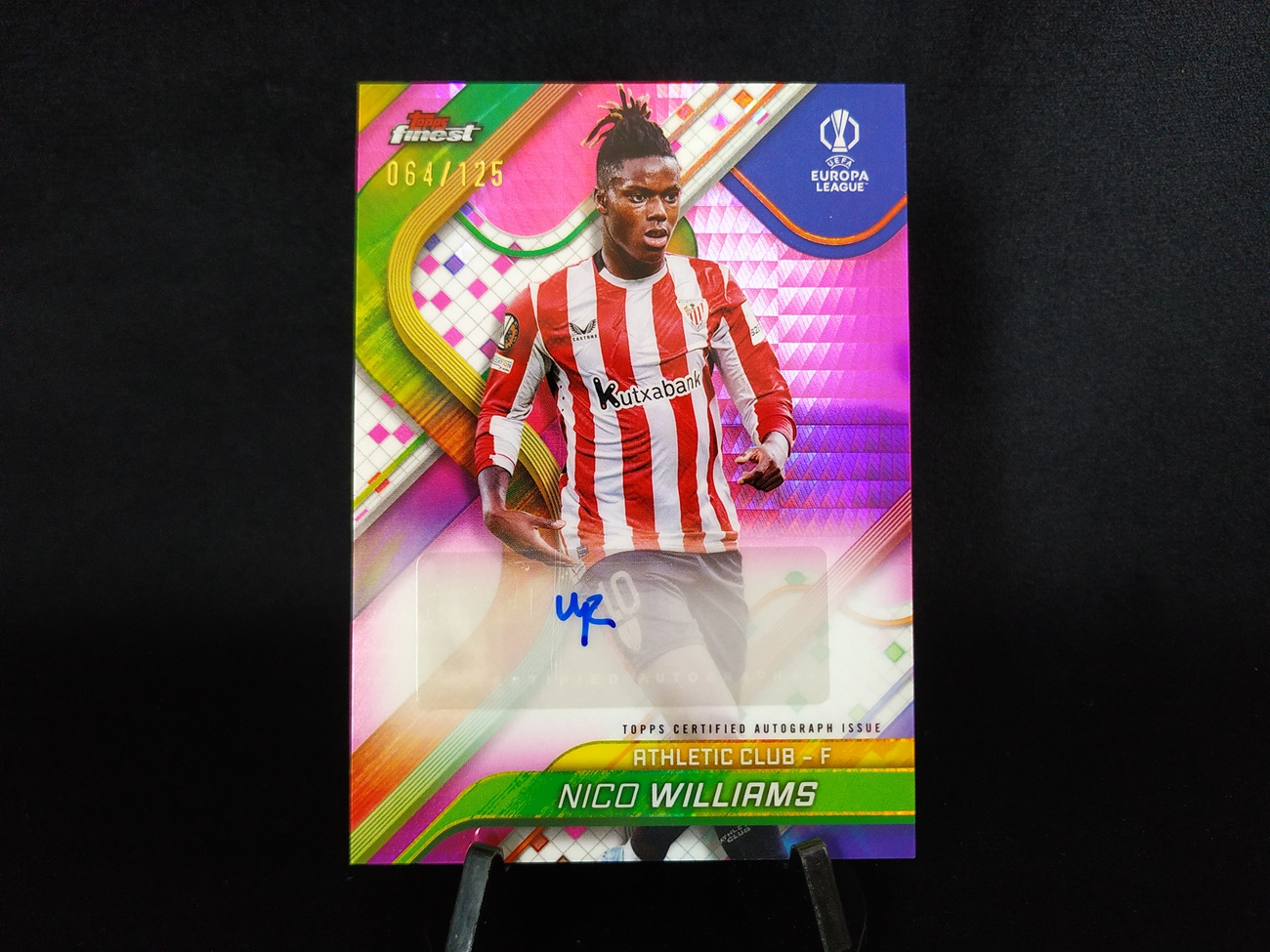 7-20【钢蛋儿拍卖】wzzw 78 topps 2024-25 Finest UCC 欧战 欧冠 毕尔巴鄂竞技 Autograph variation hyper粉折 签字 125编 尼科 威廉斯 Nico Williams 卡品如图