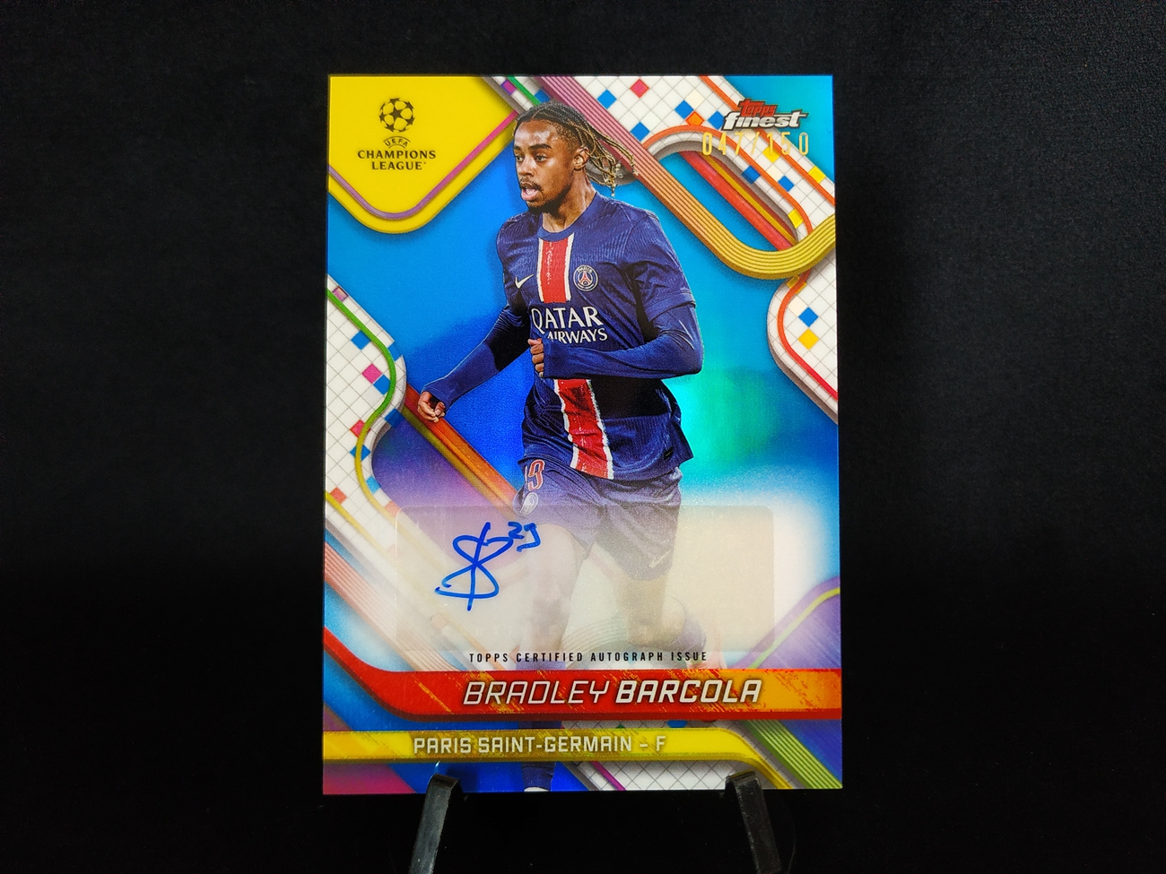 7-20【钢蛋儿拍卖】wzzw 80 topps 2024-25 Finest UCC 欧战 欧冠 巴黎圣日耳曼 Autograph variation 蓝折 签字 150编 布拉德利 巴尔科拉 Bradley Barcola 卡品如图