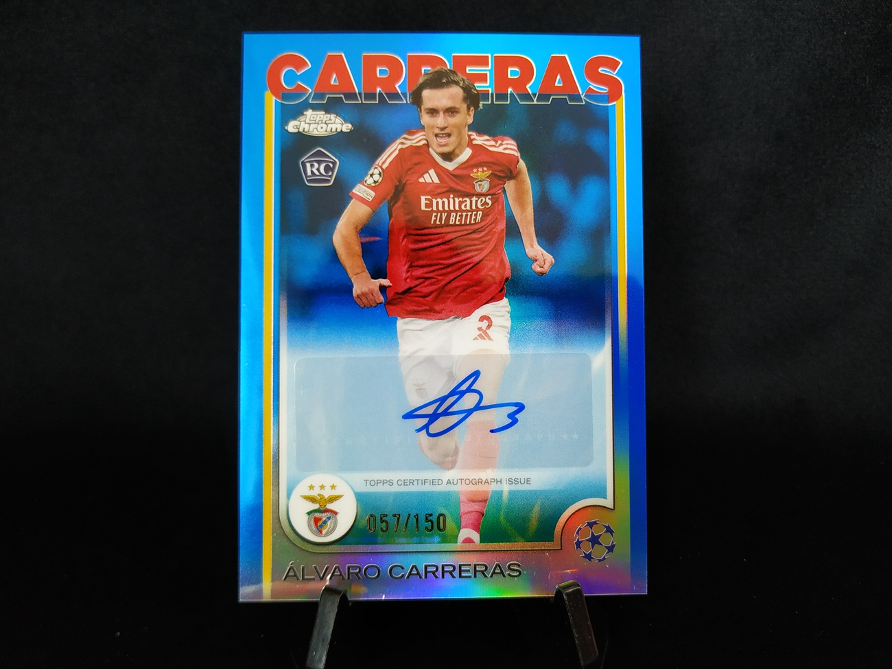 7-23【钢蛋儿拍卖】wjyi 525 topps 2024-25 欧冠 欧战 Chrome UCC 本菲卡 RC 新秀 蓝折 签字 150编 阿尔瓦罗 卡雷拉斯 Alvaro Carreras 卡品如图