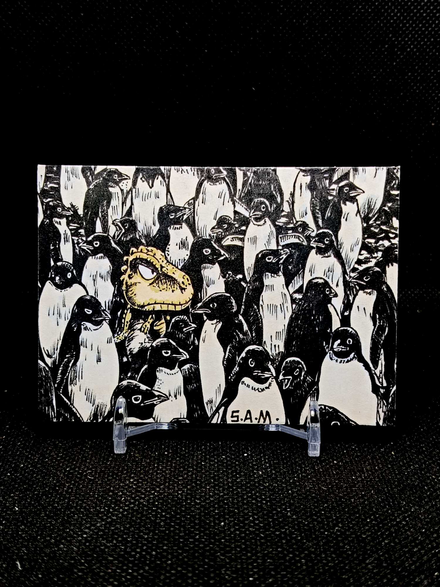 「乐淘拍拍」LIGHTNING DINOSAUR STUDIOS 被企鹅包围着 艺术家手绘 画师亲签 1of1
