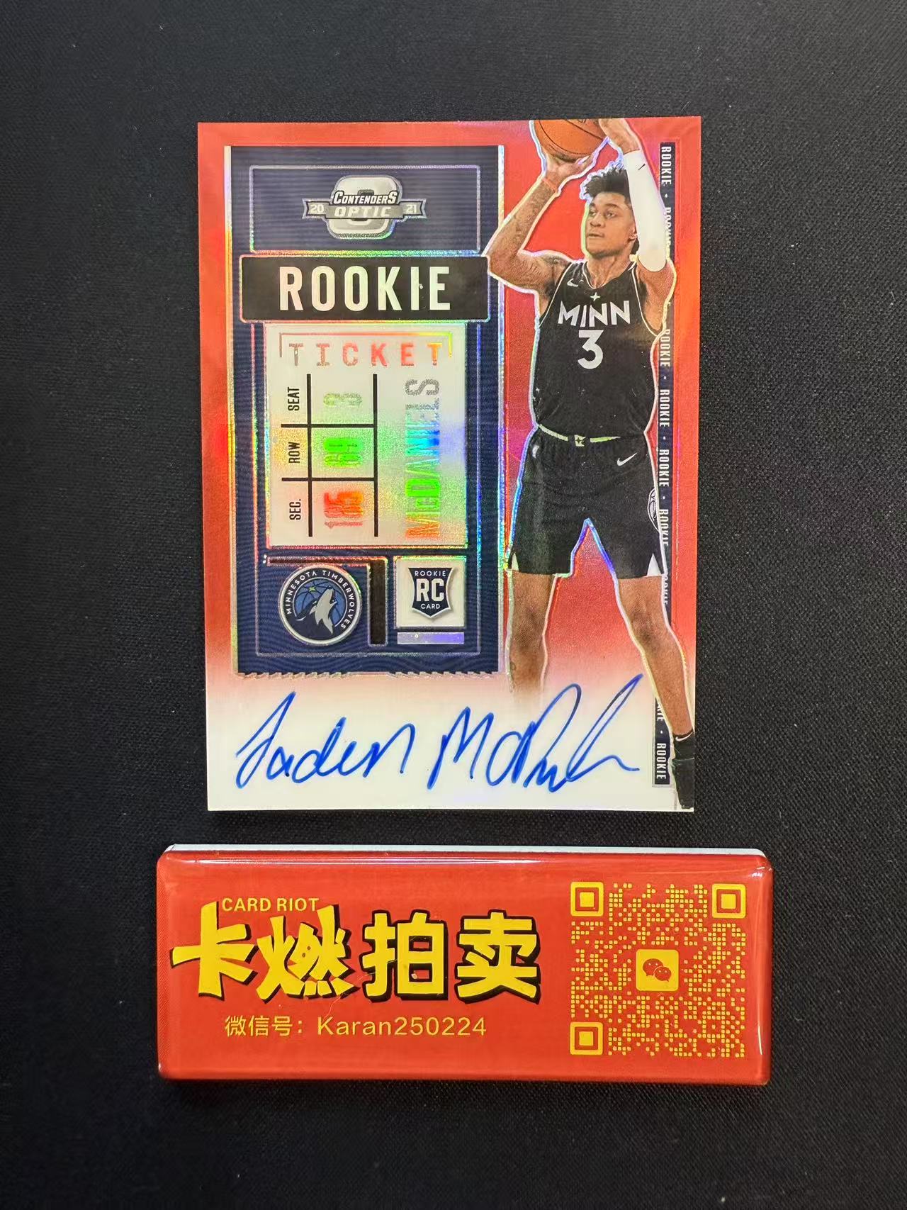 2020-21 【卡燃拍卖预付85%】 Contenders Jaden McDaniels RC 球票 森林狼 杰登 麦克丹尼尔斯 新秀RC /99编 签字 卡签 折射 红折 不保卡品【冰鸡】