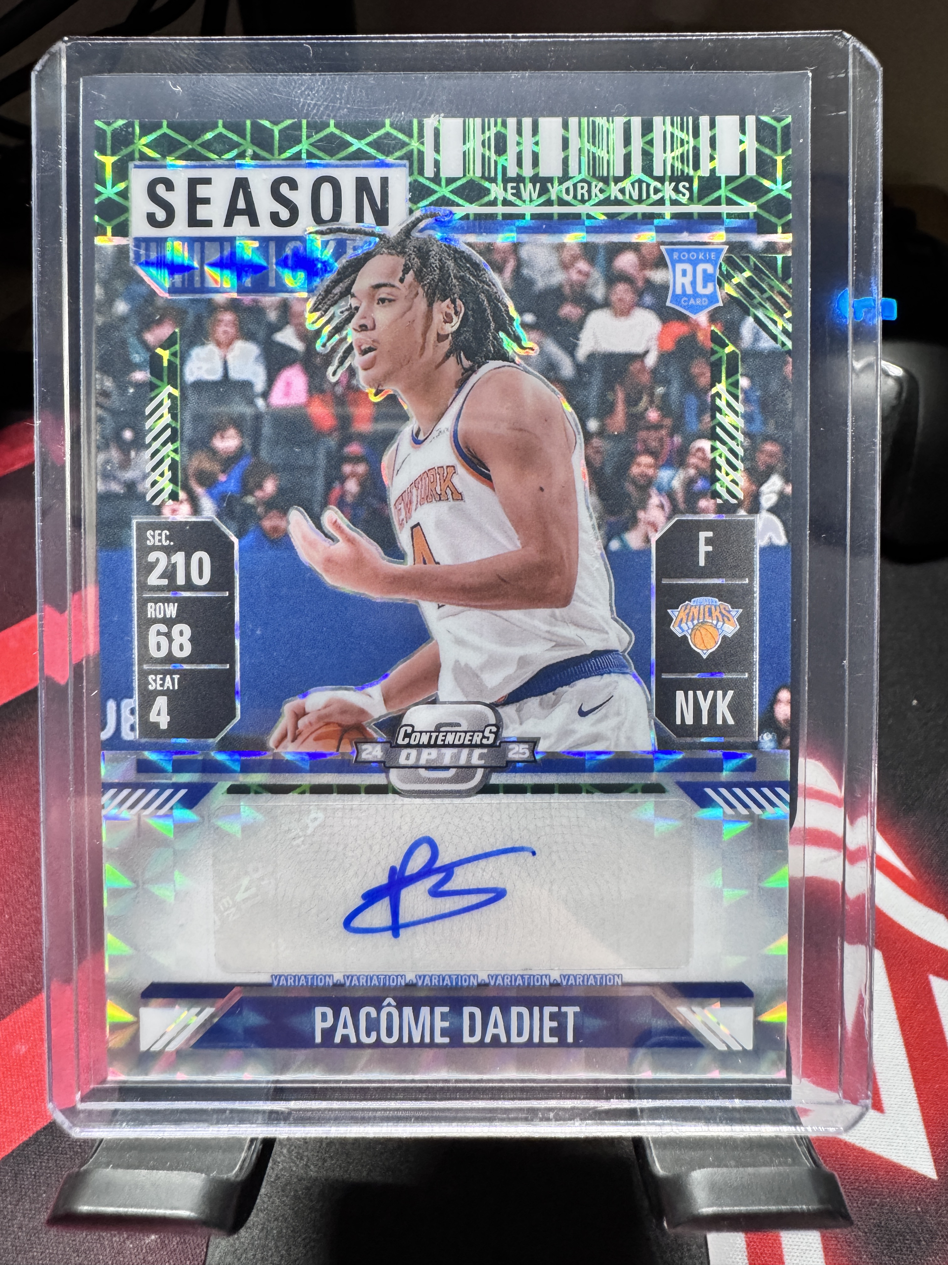 2024-25 Panini Mosaic Pacome Dadiet RC 【角马拍卖】 马赛克 纽约 尼克斯 新秀 帕科姆 达迪耶 球票 签字 /5编 同背 绿光谱折 先行 未来可期