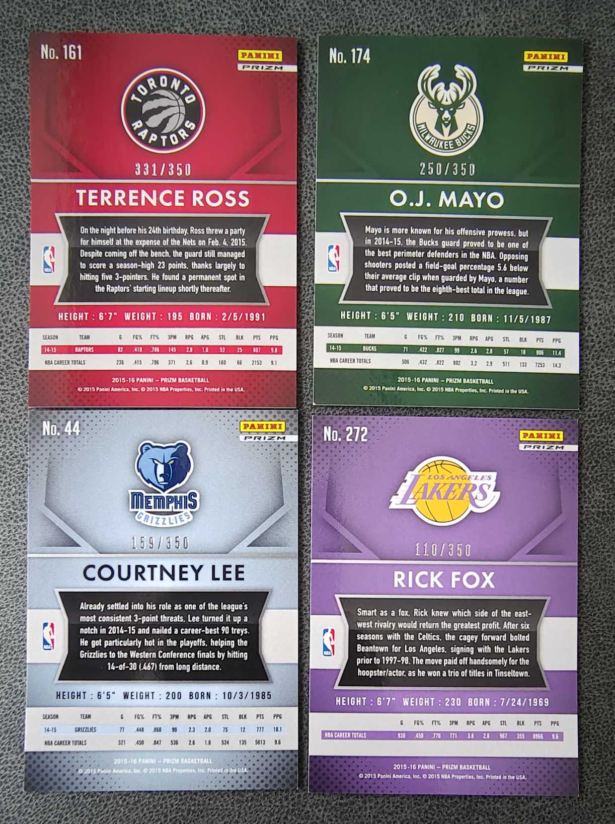 2015-16 Panini Prizm O.J. Mayo oj梅奥带队 四张350编红折打包 湖人 雄鹿 梦龙 灰熊
