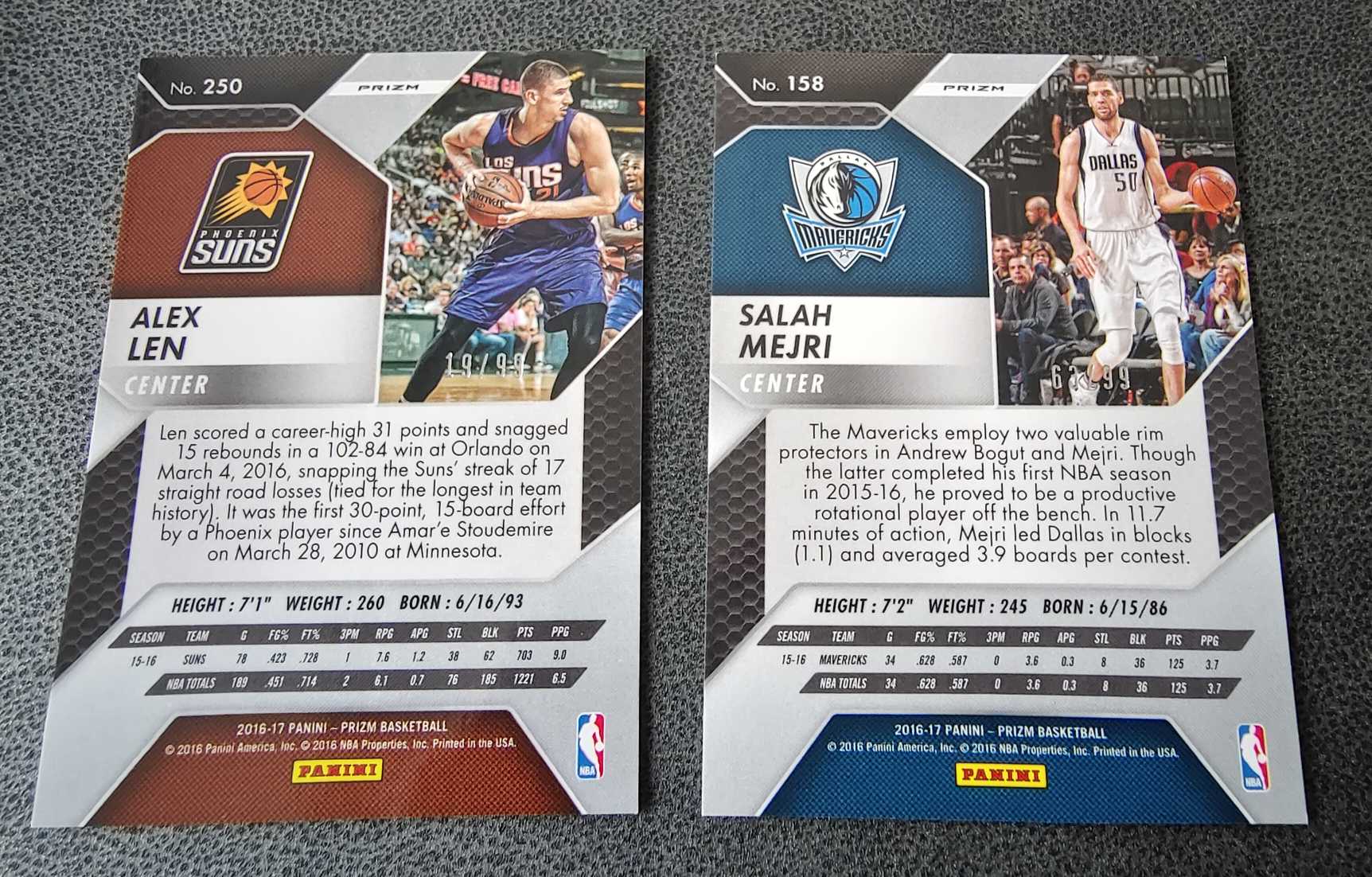2016-17 Panini Prizm Alex Len 菲尼克斯 太阳队 艾利克斯 伦 蓝折 19/99带队 达拉斯 小牛队 萨拉赫 梅杰里 Salah Mejri 63/99 两张一起出