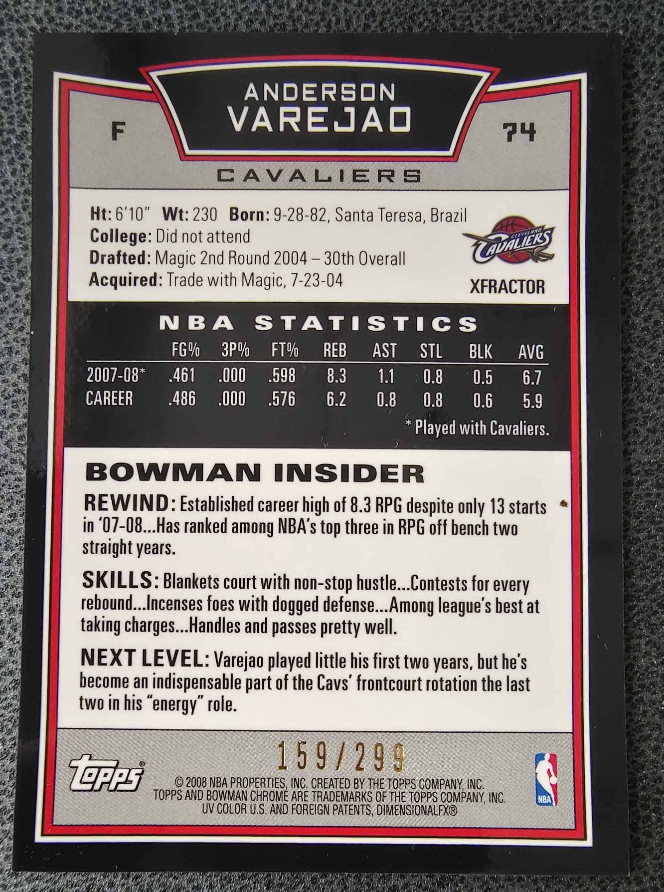2008-09 Topps Chrome Anderson Varejao 安德森 瓦莱乔 克利夫兰 骑士队 黑格子折 159/299 老卡 凑套必备