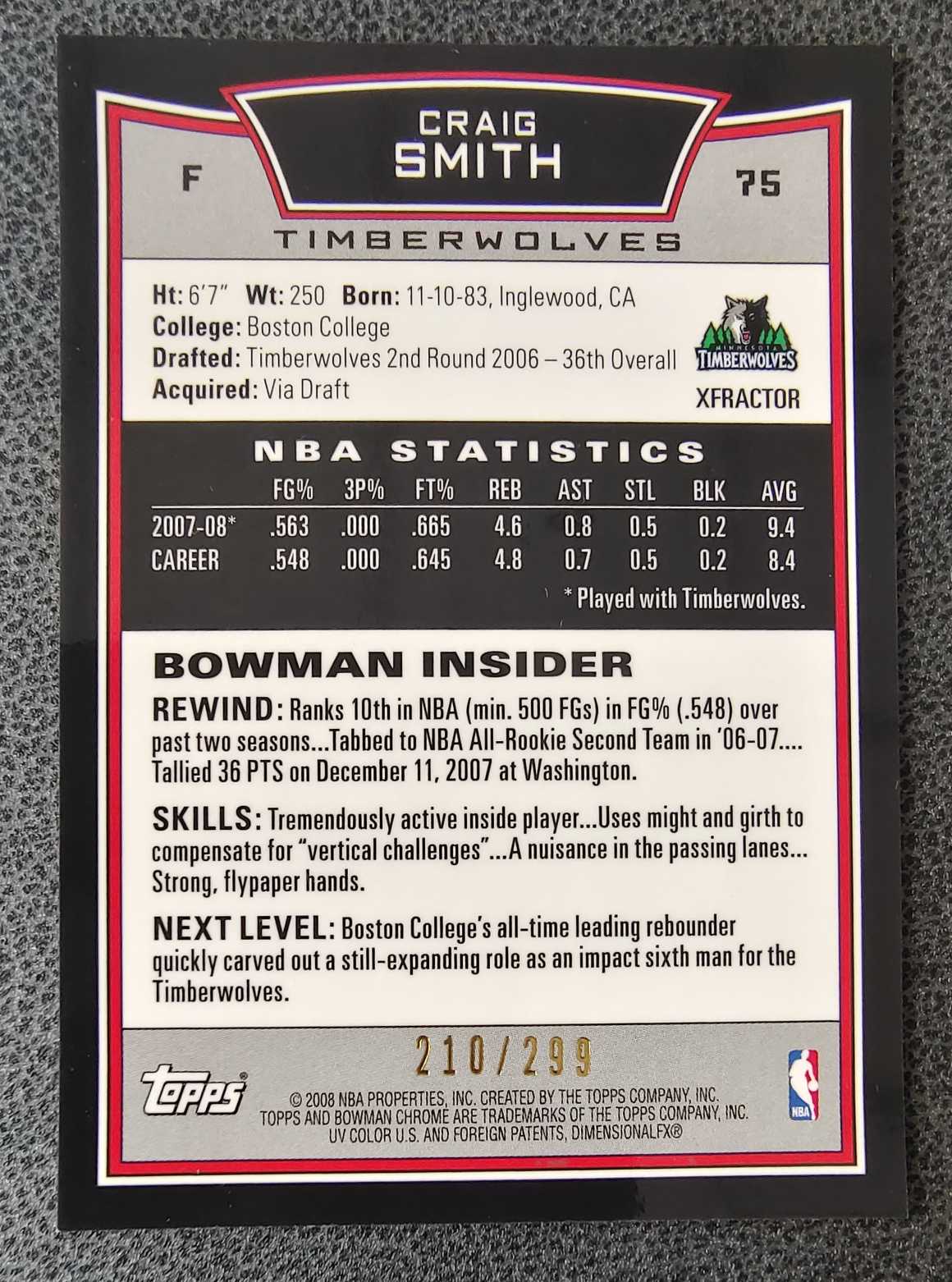 2008-09 Topps Chrome Craig Smith 克雷格 斯密斯 明尼苏达 森林狼队 黑格子折 210/299 老卡 凑套必备