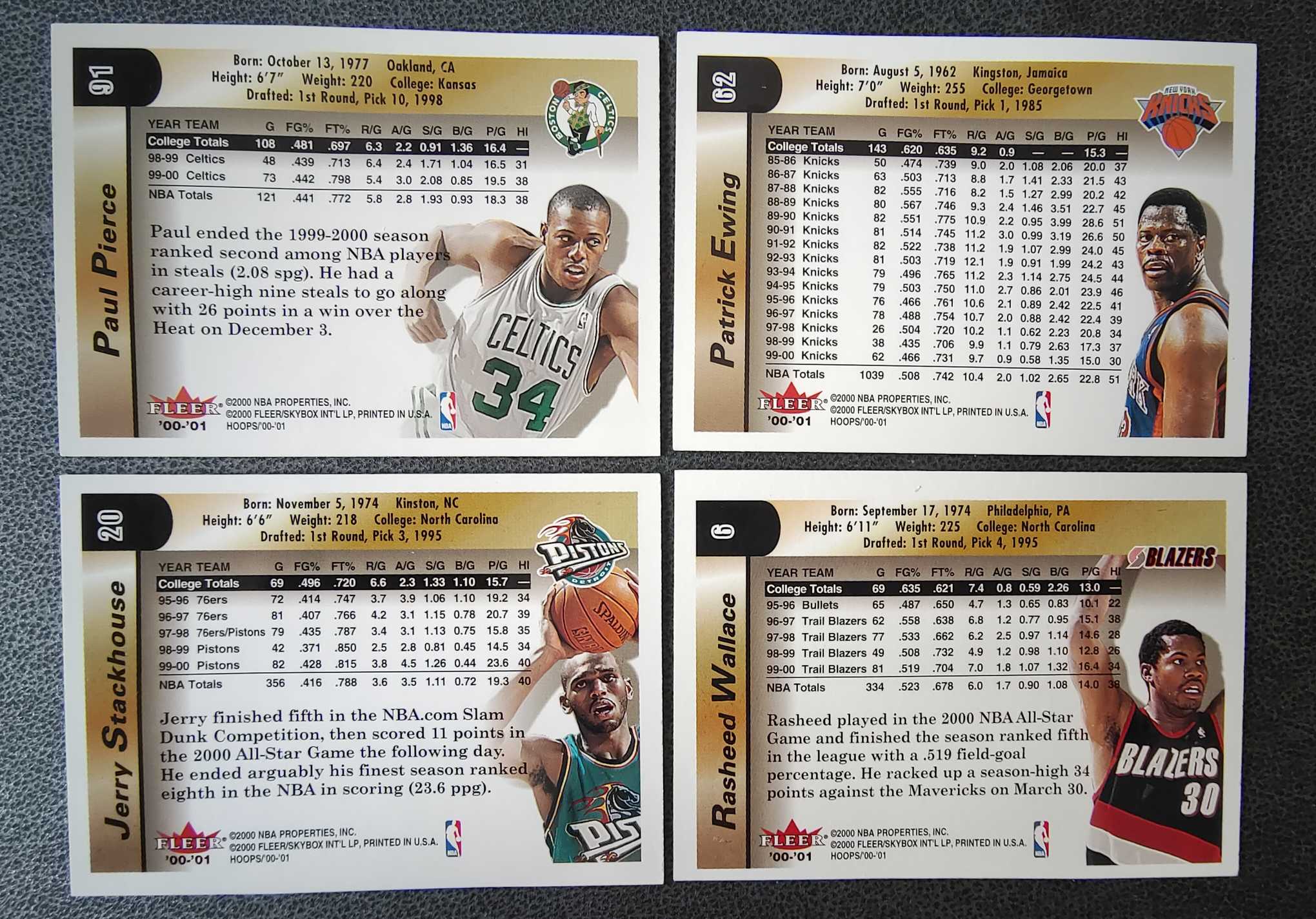 2000-01 Fleer NBA Hoops Hot Prospects Paul Pierce 凯尔特人保罗皮尔斯 尼克斯尤因 开拓者拉希德华莱士 四张好人老卡打包 金闪闪 凑套必备