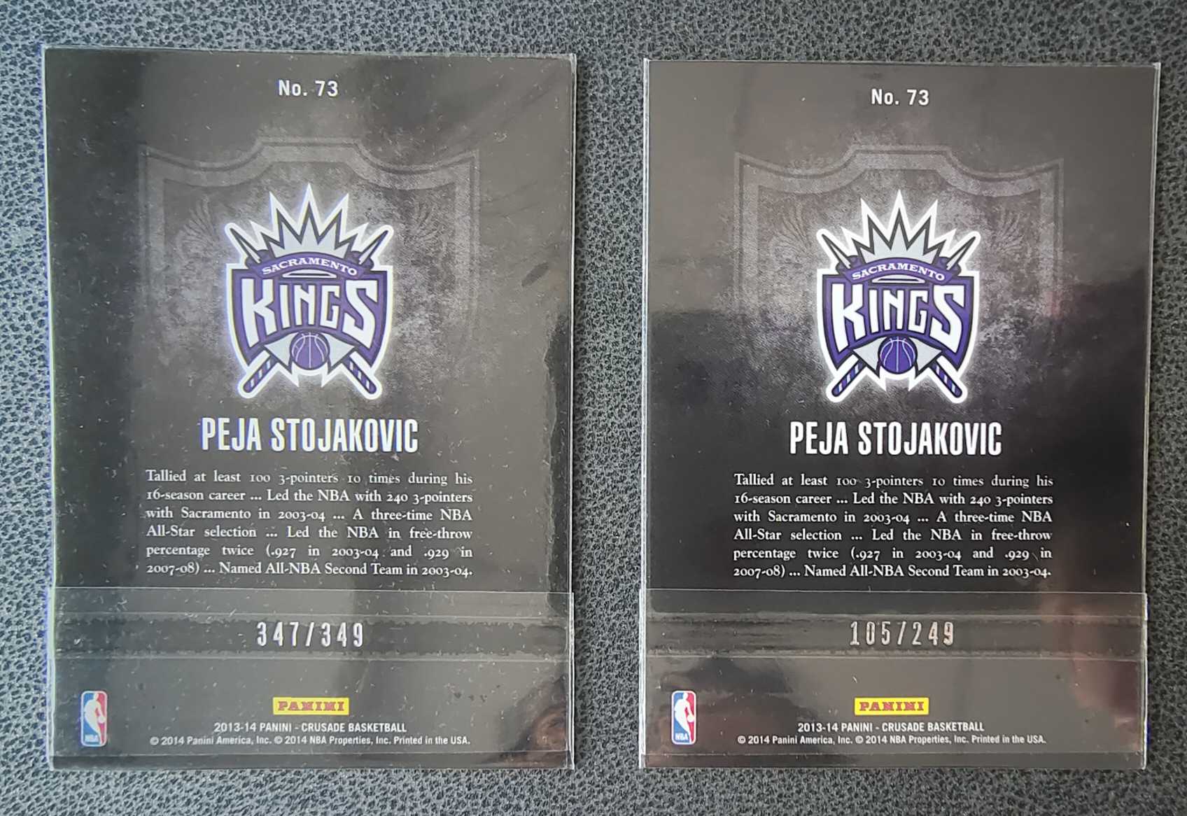 2013-14 Panini Crusade Peja Stojakovic 萨拉克门托 国王队 佩贾 斯托科维奇 红折 青折 都带编 347/349 105/249 凑套必备